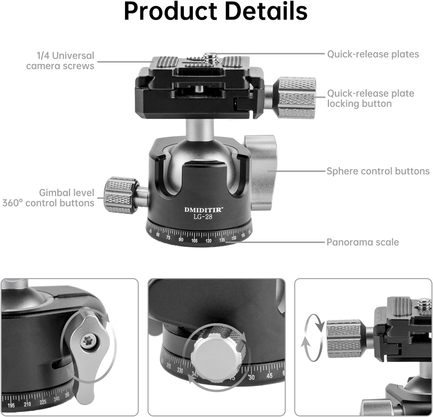 | BuiltIn Media | 1/4" Screw, Acra Swiss Plate, Ball Head,, Camera Mount, Tripod Head |