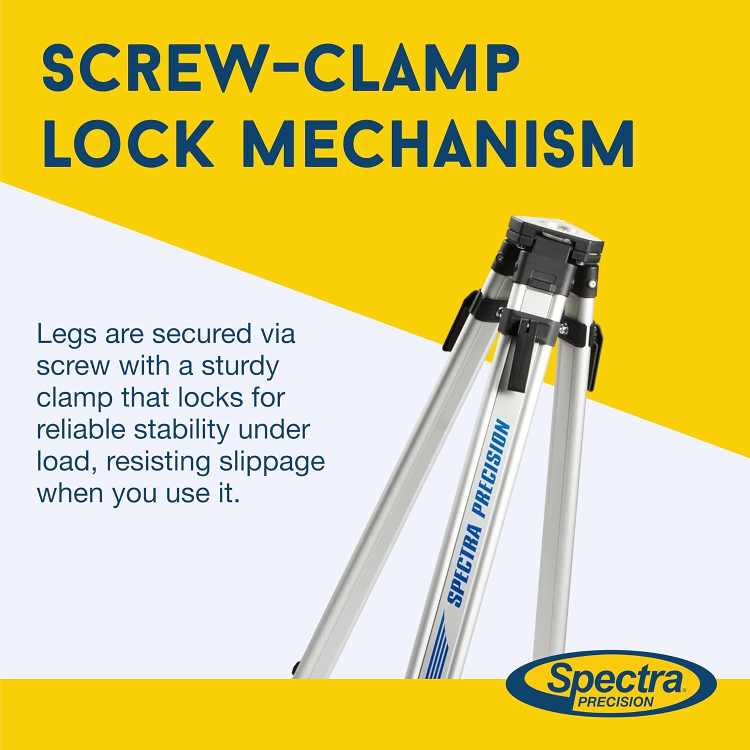 The Spectra Aluminum Tripod with Round Legs accommodates 5/8 x 11 instruments and is designed for all types of jobs. With a telescopic aluminum round legs which allow easy setup, this tripod extends up to 65 inches. Plus, the Spectra tripod features a screw clamp lock type with a triangular flat head that securely holds the instrument. Comes with a black finish coating, this tripod only weighs 9.35 pounds ideal for all surveying applications.