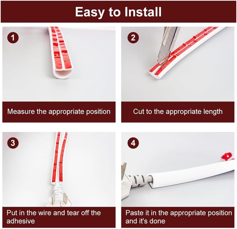 Feature:【Soft and Sturdy】This self-adhesive cable duct is mainly made of PVC, which has good flexibility and is very wear-resistant. Even if it is often subjected to friction by the cable or trampled by shoes, it will not be easily deformed or broken.【Safe and Flame Retardant】The PVC material of this semicircular cable cover also has good safety insulation properties, can effectively isolate the power supply and fire source, so as to effectively protect your safety, you can rest assured that you can use.【Self-Adhesive Backing】This cable duct is also designed with adhesive backing, with strong adhesive, can be tightly pasted on the wood and tile floor or wall, will not be easily loosened because of external vibration.【Multiple Models】We provide 3 types of models A, B and C of this white self-adhesive tape for you to select, the length is 3m/9.84ft, 2m/6.56ft and 1m/3.28ft respectively, you can purchase according to the actual needs.【Wide Application】The good quality cable duct management solution, ideal for sorting tangled cables or extending cables. Mainly used in homes, offices, garages, warehouses, indoors or Mainly used in homes, offices, garages, warehouses, indoors or outdoors to attach cables to floors, walls and worktops and keep surfaces clean and tidy.Specification:Material: PVCModel: A, B, CLength: 3m/9.84ft(A), 2m/6.56ft(B), 1m/3.28ft(C)Size: 15*10mm/0.59*0.39inNet Weight: 290g/0.64lb(A), 190g/0.42lb(B), 100g/0.22lb(C)Note: Please allow manual measurement error.Package Included:3 * Semicircular Cable Cover