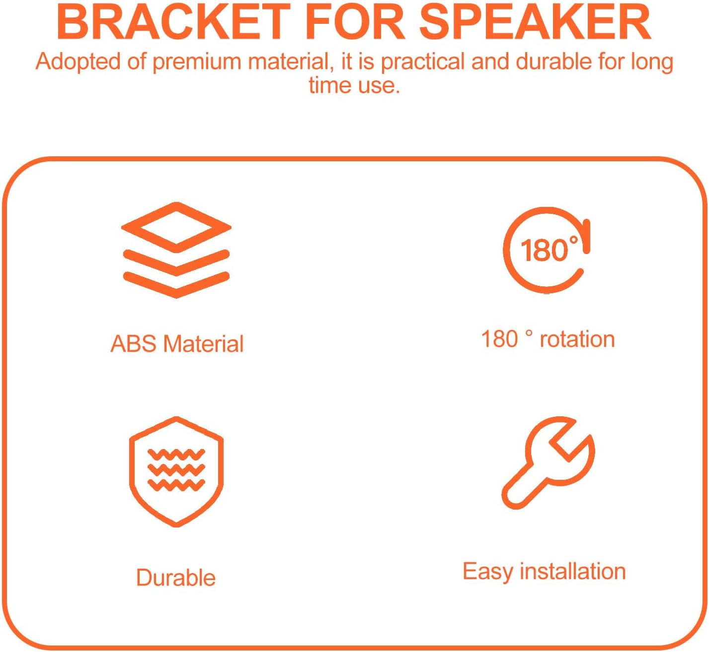 Package Include 6 x speaker wall mount brackets 12 x medium-length screws 12 x short screws 12 x short screw caps 12 x expansion tubes Features - Size: About 7.60X6.30X4.70cm/2.99X2.48X1.85inch. - Material: ABS. -Product Info:Audio stand - Adjustable angle up and down: 20° brackets surround sound. - The simple design with classic colors can match a variety of home decorations. - This speaker mounting bracket can be used in homes, KTV, bars, concerts, etc wall mount speakers brackets. - This speaker wall mounting bracket has good load-bearing capacity, can use it with peace of bracket holder. - and good craftsmanship ensure its durability and practicality. - The installation method is simple and will not take you too much time sound speaker mounts.Goods InformationSpeaker Mount Brackets It is one of the for you.wall mounted speaker racks Are you looking for a , yet surround sound wall mount bracket? Are you in search of a sturdy, trustworthy tool that can do multiple jobs? , ! Our multiple adjustment surround sound wall mount bracket must meet your needs