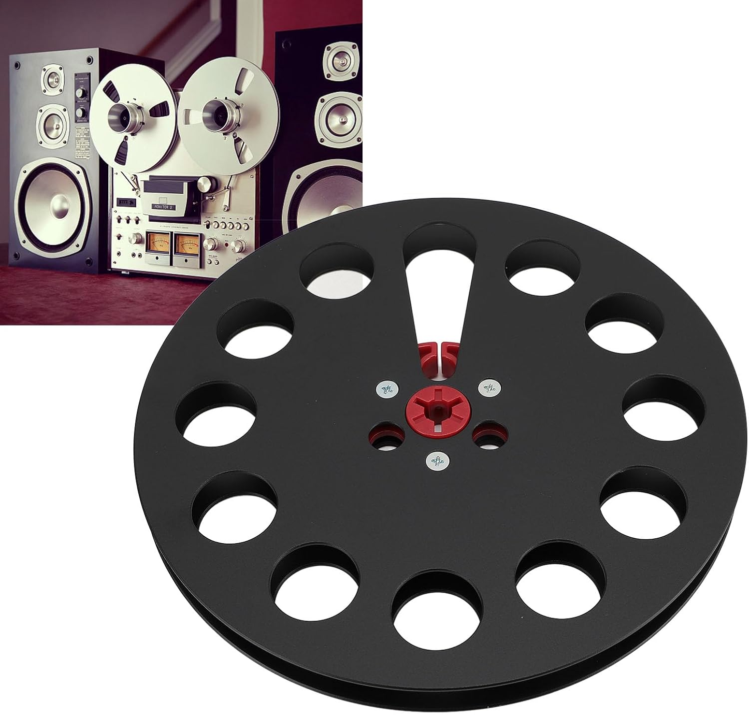 Spec: Item Type: Empty Tape Reel Material: Aluminum alloy Suitable Tape: 1/4 inch Reel Diameter: Approx. 17.8cm/7in Application: Universal How to Use: Out of the box PackageList: 1 x Empty Tape Reel Note: Even a 7 inch capacity deck requires a deck's NAB hub adapter for any NAB reel.