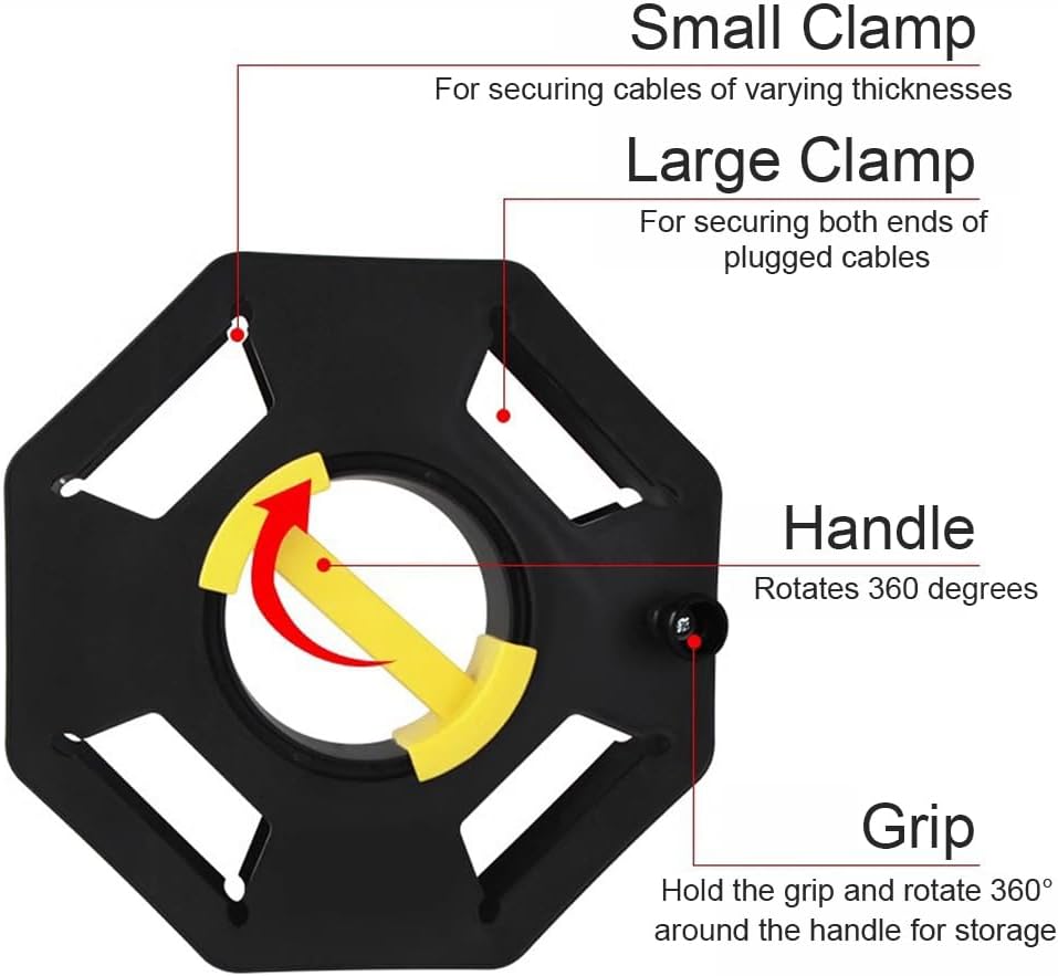 Feature:【Generous Storage Capacity】With an outer diameter of 32.50cm/12.80in, this cable reel offers substantial storage space, easily accommodating longer lengths of cable. It meets the needs of homes, workshops, or temporary power scenarios, preventing tangled wires and keeping your workspace neat and organized.【Versatile Applications】This cable organizing reel is Lightweight and portable, which excels not only in fixed locations like home garages or balconies but also in mobile scenarios such as camping, automotive maintenance, and outdoor activities. It enables quick cable deployment and retrieval, enhancing cable management efficiency across diverse settings.【Anti-Tangle Design】The spool structure of this PP extension cord winding reel ensures cables remain neatly organized during storage and retrieval, significantly reducing knots and tangles. This minimizes inconvenience and potential safety hazards caused by messy wiring, making every cable retrieval effortless and hassle-free.【Portable Design】With a moderate size and lightweight construction, this manual wire storage organizer is easy to carry or store in tight spaces. Ideal for situations requiring frequent cable movement—like temporary construction sites or travel vehicles—it offers instant access without taking up extra space.【Sturdy and Wear-Resistant】Primarily crafted from good-quality PP with a sturdy frame structure, this cord winding winch withstands minor daily impacts and abrasion, ensuring reliable long-term performance.Specification:Material: PPColor: BlackSize: 32.50*8cm/12.80*3.15inCenter Hole Dia.: 13cm/5.12inWeight: About 480g/1.06lbNote: Please allow for manual measurement errors and color variations.Package Included:1 * Cord Winding Winch for RVs/Boats