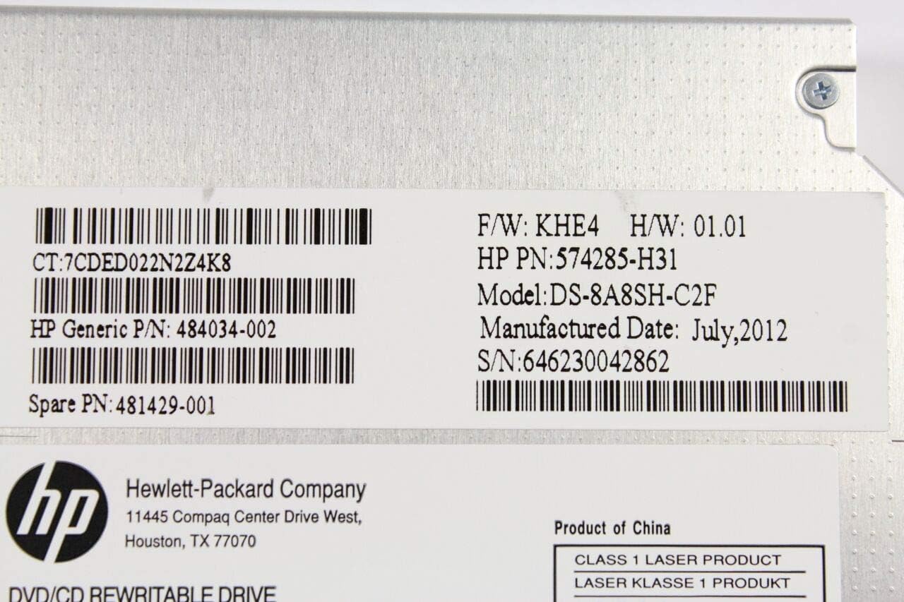 Brand: HP Part Number: 484034-002 MPN: 574285-H31, 481429-001 Model: DS-8A8SH Type: Internal Laptop Drive Readable Format(s): CD-R, CD-ROM, CD-RW, DVD+R, DVD+R Dual Layer, DVD+RW, DVD-R, DVD-R Dual Layer, DVD-RAM, DVD-ROM, DVD-RW Writable Format(s): CD-R, CD-RW, DVD+R, DVD+R Dual Layer, DVD+RW, DVD-R, DVD-R Dual Layer, DVD-RAM, DVD-RW Interface: SATA Color: Black Compatibility: Compatible Product Line: Proliant, StorageWorks Compatible Model: HP Proliant DL120 G5 HPProliant DL160 G8 HP Proliant DL180 G6 HP Proliant DL320 G5 HP Proliant DL360 G6 HP Proliant DL360 G7 HP Proliant DL370 G6 HP Proliant DL380 G6 HP Proliant DL380 G7 HP Proliant DL385 G7 HP Proliant DL580 G5 HP Proliant DL580 G7 HP Proliant DL585 G7 HP StorageWorks X1600 HP StorageWorks X1800 HP StorageWorks X3800 HP StorageWorks X5500 HP StorageWorks X9300 HP StorageWorks X9320 Condition: Manufacturer Refurbished This item will be Shipped exactly as shown in the picture