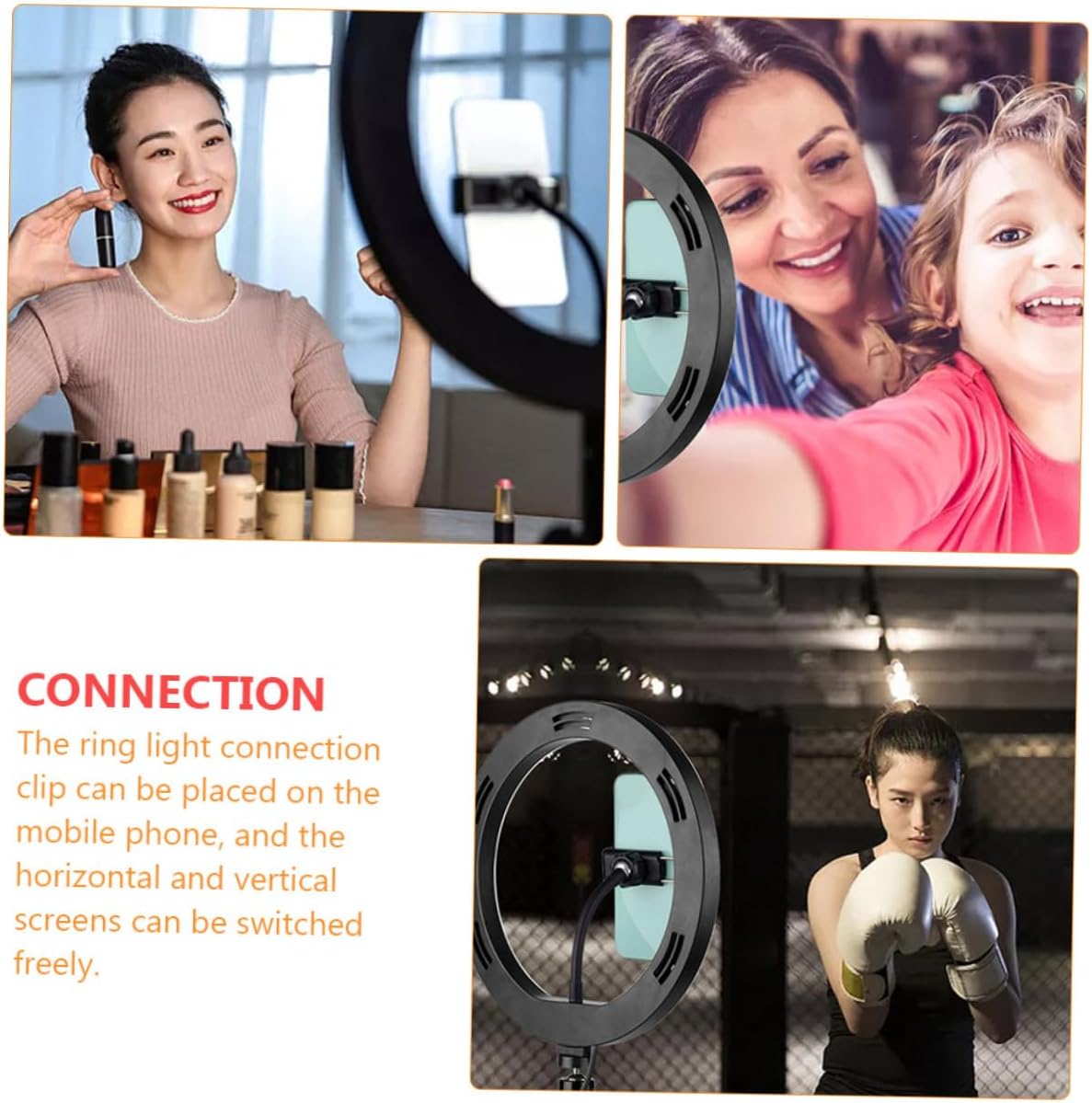 Package Include 1 x fill light 1 x tripod head 1 x iron stand 1 x shutter Features -Color: Black. -Product Info:Fill light bracket -Size: About 39.00X25.50X18.00cm/ 15.33X10.02X7.07in. -Voltage: 5V mobile phone holder. -Color Temperature: 3000-6500K. -Light Source Type: 2835 LED phone stand for live. -Material: Plastic, Iron. -Light Source Power: 8-10W phone stand for recording. - This mobile phone holder is made of and is durable. - Suitable for use by celebrities or in photography studios phone holder for recording. - The bottom design is firm and not easy to fall down mobile phone tripod stand. - With light filling function, it is perfect for mobile phone live broadcast cell phone tripod stand. - workmanship, details, can be seen everywhere mobile phone selfie fill light bracket.Goods Informationphone stand for live , suitable for live broadcast, photography, , etc.tripod for cell phone Multifunctional design, can brighten skin, beautify, etc.mobile phone holder This mobile phone holder is made of , has and , and professional fill light makes photography easier