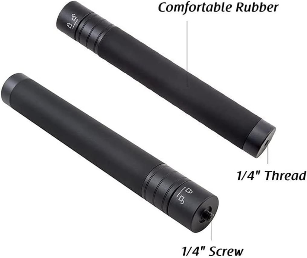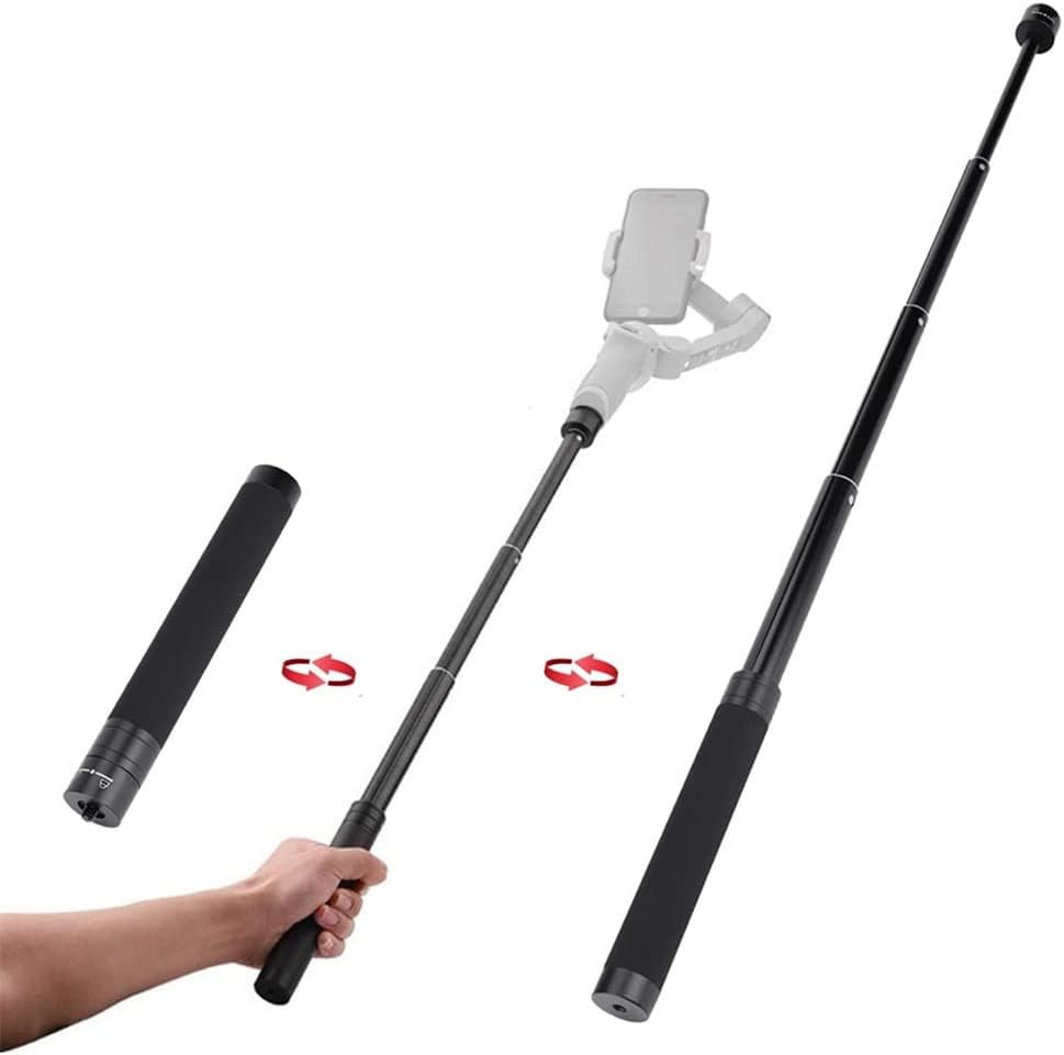 Reach pole for gimbal with 1/4" thread on axis bottom, such as for Feiyu WG2/G5/SPG handheld gimbal & etc.Length adjustable from 19cm to 73cm.to adjust length, easy to operate.With 1/4" thread on the bottom, can be mounted on tripod/slider.Made of lightweight carbon fiber to reduce your fatigue.Non-slip design handgrip offer comfortable texture.Specifications:Material: Aluminum alloy + siliconeMaximum Length: 73cm / 28.7"Item Size: 19 * 2.7cm / 7.5 * 1.1"(L * D)Item Weight: 164g / 5.8ozPackage Size: 20.5 * 9 * 2.7cm / 8.1 * 3.5 * 1.1"Package Weight: 172g / 6.1ozPacking :1 PCSDue to the problem of computer display and shooting light, there may be a little color difference, because there may be a size gap of 1-3mm in manual measurement, please understand dear customers.