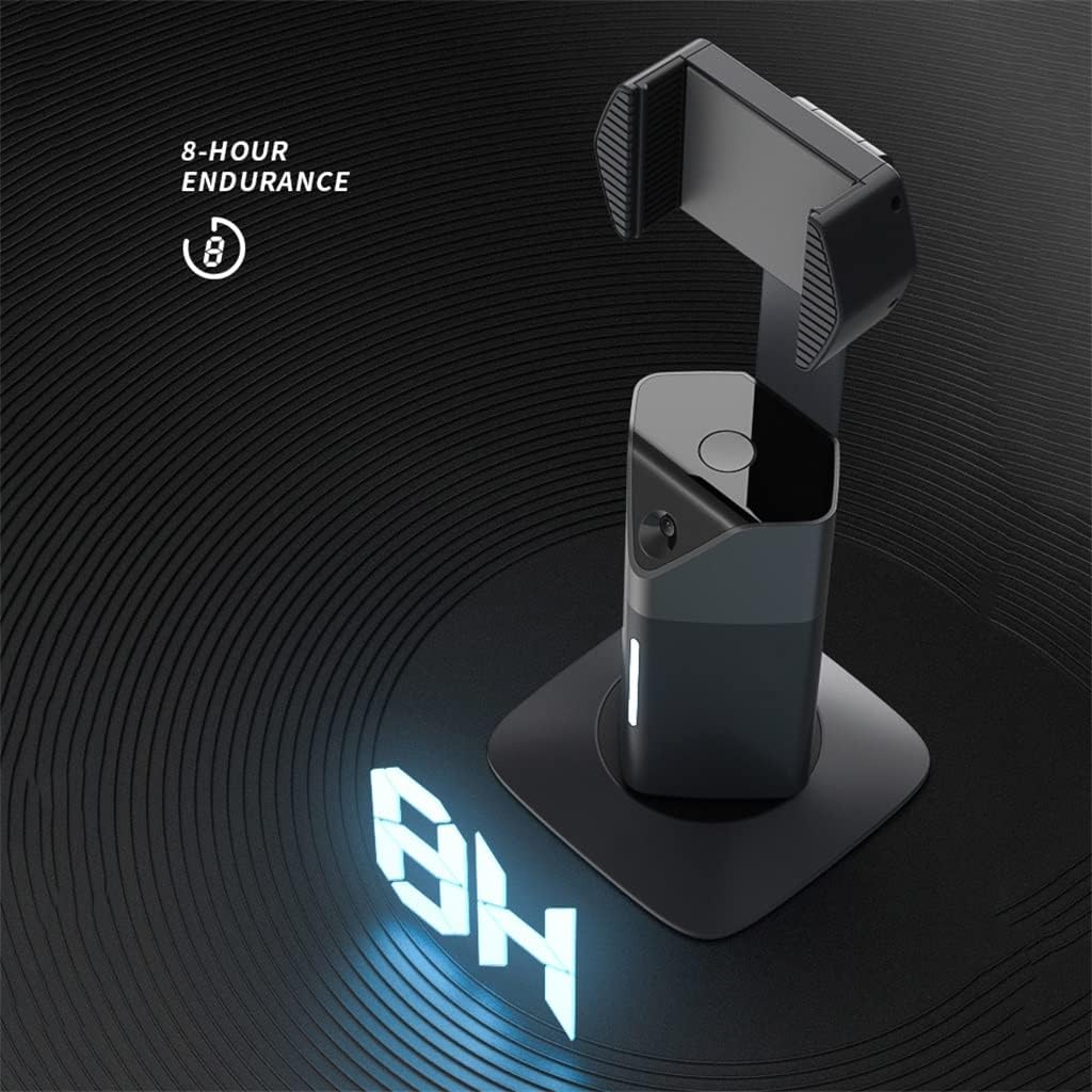T8 smartphone stand, built-in Intelligent camera and AI technology chip, through AI face tracking . It is a good partner on shoot video, through AI face tracking , 360 degree rotation tracking, smart capture every moving moment. Built-in stabilizer, used on video meet, volgging shooting, online teaching , video calling, Live streaming ect.T8 face auto tracking phone stand , auto tracking through built-in AI Technology chip to auto recognize follow-up tracking, without download any APP that does not use cellphone memory, easy installation turn on and start work, T8 net weight about 300g, detachable and foldable lightweight design, It doesn't take up much space , convenient for travel shooting.T8 360 degrees rotate phone holder, Built-in stabilizer, with 1/4" interface, compatible with the camera tripod, meet different hight shooting require, adjust the good point of view, to capture you want to on video.T8 auto tracking phone holder, can identify two gestures instructions, start and pause gestures if don't need the whole track shooting, you can use the pause gestures instruction, Holder will stop tracking you, holder will bright red light, if need to track when shooting, use start gestures instruction, holder will continue to capture the moving scenes.Cellphone clip can adjust level rotate 360 degrees, can adjust Vertical 190 degrees, you can adjust any Angle, to show the best Angle of life, 90 degrees of rotation speed per second, real-time capture every moment. It's your partner to track your outdoor sports activities, yoga, and other physical athletic training that you want it captured on video.The smart tracking phone holder is equipped with a built-in rechargeable 2200mAh battery and Type-C charging port. After fully charged, it will last up to 6-8 hrs.Packing :1 PCSDue to the problem of computer display and shooting light, there may be a little color difference, because there may be a size gap of 1-3mm in manual meas
