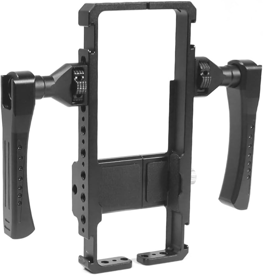 FEICHAO Dual Handle Phone Cage Handheld Mount Hand Grip for Phone Photography Expansion Bracket Accessories Description Name: mobile phone photography universal cage Applicable mobile phone models: 62-100mm mobile phone Material: Aluminium Alloy Features: 1. The main body is made of aluminium alloy, CNC precision machining and anodic oxidation, wear-resistant and corrosion-resistant, long service life. 2. Dual handle ing, more stable. Dual-grip operation turns your smartphone into a professional device, which allows video creators to unleash their creativity. 3. Built-in rubber pads protect the phone from damage while preventing it from falling off. 4. The left and right handles are detachable and can be mounted on the wide or long sides of the cage for horizontal or vertical ing, suitable for different scenarios. Functional Use: 1. Expandable with multiple devices, support the use of tripods, tripod heads and also can install fill light, microphone and other accessories to meet your creative needs. 2. Retractable mobile phone clip, clip distance upgraded to 100mm, the market commonly used large screen mobile phones can also be applied. 3. With 4* cold shoe mounts, multiple 1/4 screw holes, multiple compatible with Arri location holes on the cage, can be used with microphone, fill light, monitor.