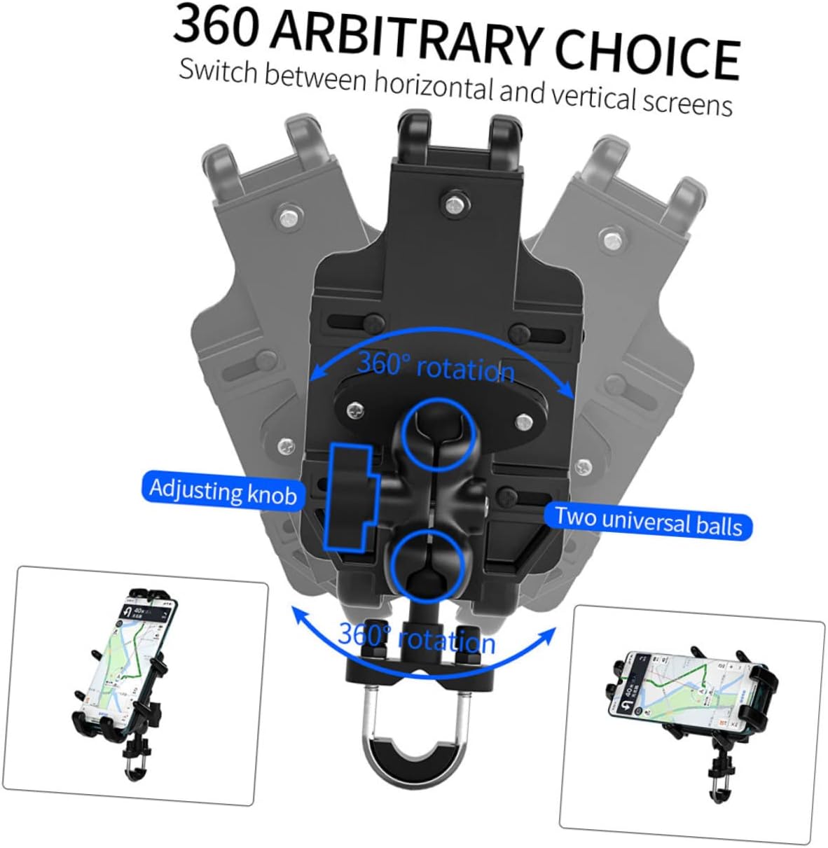 Package Include 1 set holder Features - Material: Aluminum and PC Handlebar Rack. - Color: Black GPS Navigation Bracket. - Size: 15.10 x 7.90 x 5.00cm/ 5.93 x 3.10 x 1.97 inch. - Our motorcycle cell phone holder is made of aluminum alloy Phone Mount Clip. - Waterproof and , can be attached to motorcycles, ATVs, snowmobiles and three-wheeled motorcycles that are suitable for outdoor activities Phone Support. - The product has a very high safety factor and is suitable for all smartphones. Handlebars mounting clip suit for all the motorcycle handlebars Phone Holder. - Separate structure, 360 ° rotation is easy to set, horizontal screen vertical screen turns with you Motorbike Phone Mount. - The holder is heat and and has properties Phone Mount Holder Devices.Goods InformationPhone Support 360° rotation enables positioning and easy viewing of electronic devices while riding.Phone Holder The fixed seat are equipped with protective gasket.GPS Navigation Bracket Our mobile phone holder is designed with a rotating rod and.Motorbike Phone Mount The holder is very stable and can hold the phone tightly, never falling off easily