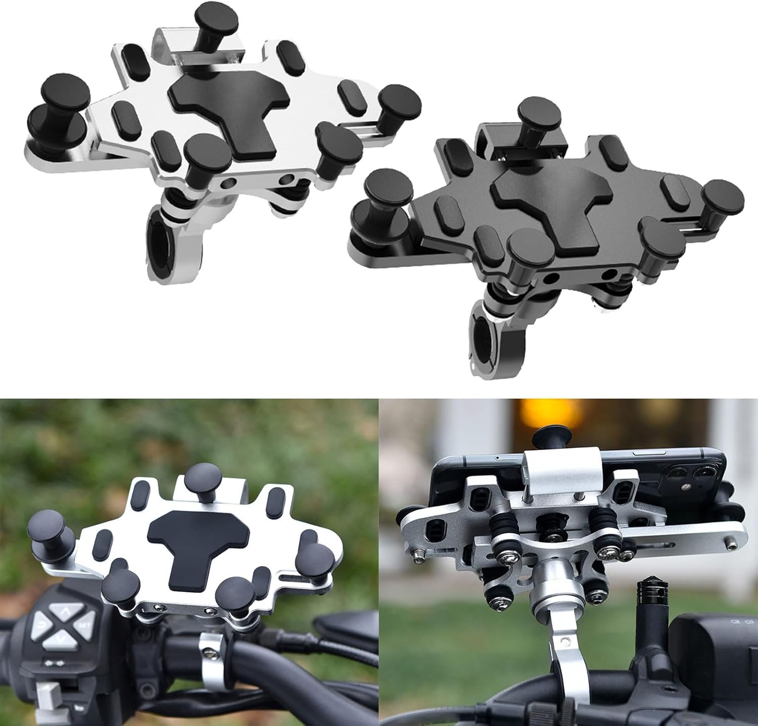 Aluminum Alloys Bike Phone Holder Motorcycles Handlebars Phone Mount Clip for Electric Bike, Mountain Bike, MotorcycleFeatures:Make of aluminum alloys materials, strong and enduring, rustproof, fading.The silicone will not cause damage to machine, and the soft rubber protects the back of the phone and the surrounding from frictions.360+180 degree 3D rotation, adjustable viewing angles, bidirectional adjustable tilts angles, meeting different use needs stable and firm, not easy to loosens. When used, the screen information is not obstructed, making cycling operations more 5 locking fixation, wild flipping without falling down, firm clamping, suitable for various complex road conditions. Specifications:Materials: Aluminum Alloys , soft rubber, ABSStyles: Silver/BlackSize: about 16x9.5x11.50cm/6.3x3.74x4.53inchPackage Includes:1pc Bike Phone HolderNote:Please allow 1-2cm errors due to manual measurement, make surely that you not mind before order. Due to difference between different monitors, the picture may not reflect the actual color.