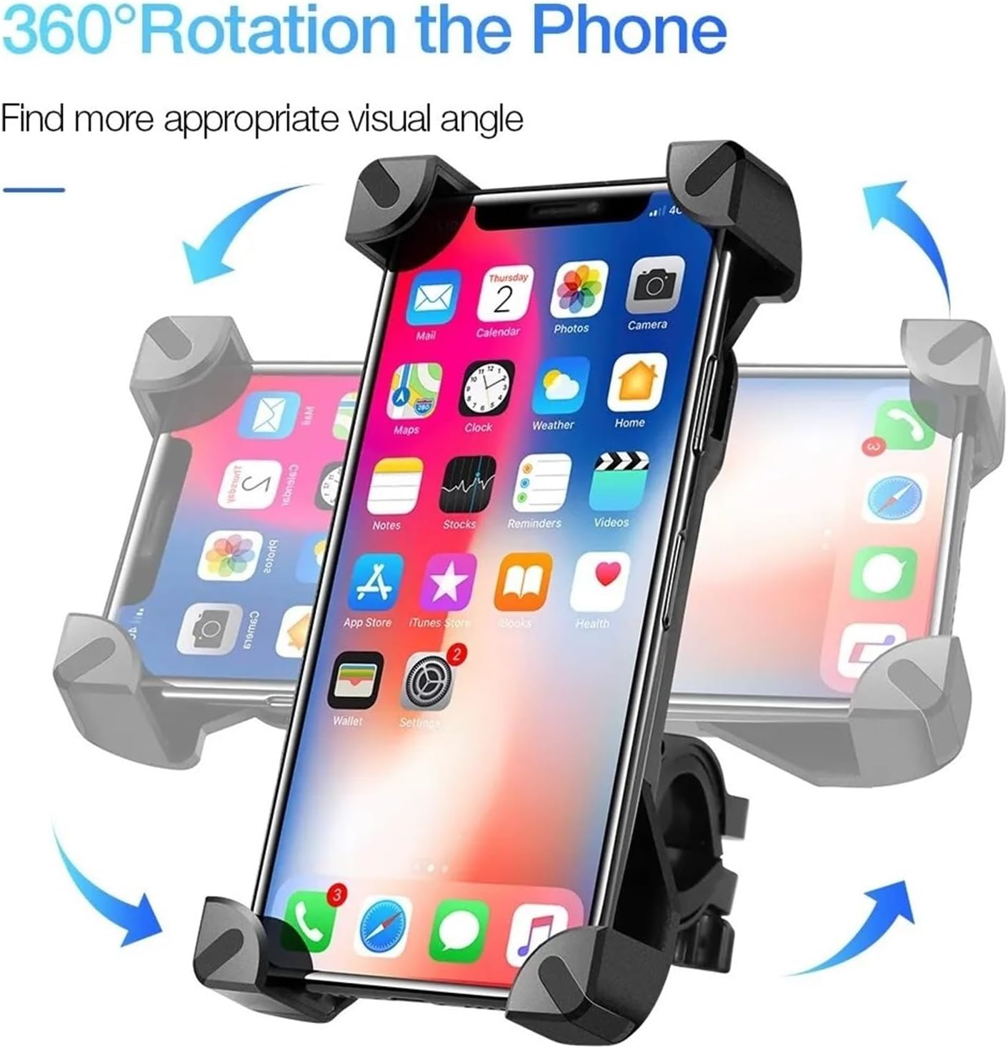 "DescriptionReport Item【Description】:Can turn 360 degrees in any direction【Product Information】:【Material】:PP+ABS【Colour】:Black【Size】:12.3*6.3cm, stretch size 18*9cm【Package Included】:1 * Bike phone holder【Notes】:1.Due to the different monitor and light effect, the actual color may be a slightly different from the picture color.2.Owning to its stable and firm structure, this phone holder can absorb the shock and protect your phone effectively.When mounting for the first time, you only need to insert your cell phone, turn the switch and adjust the holder to the correct width. By turning the switch on and off, the cell phone can be attached or removed in 1s. You can capture the beautiful moments of your trip at any time."