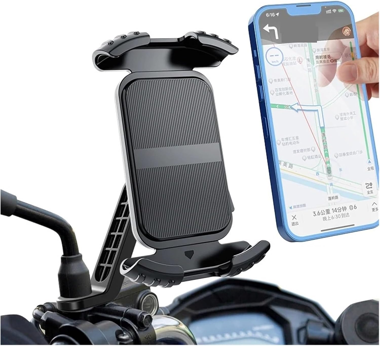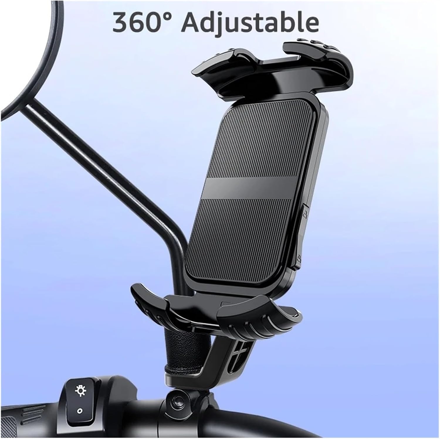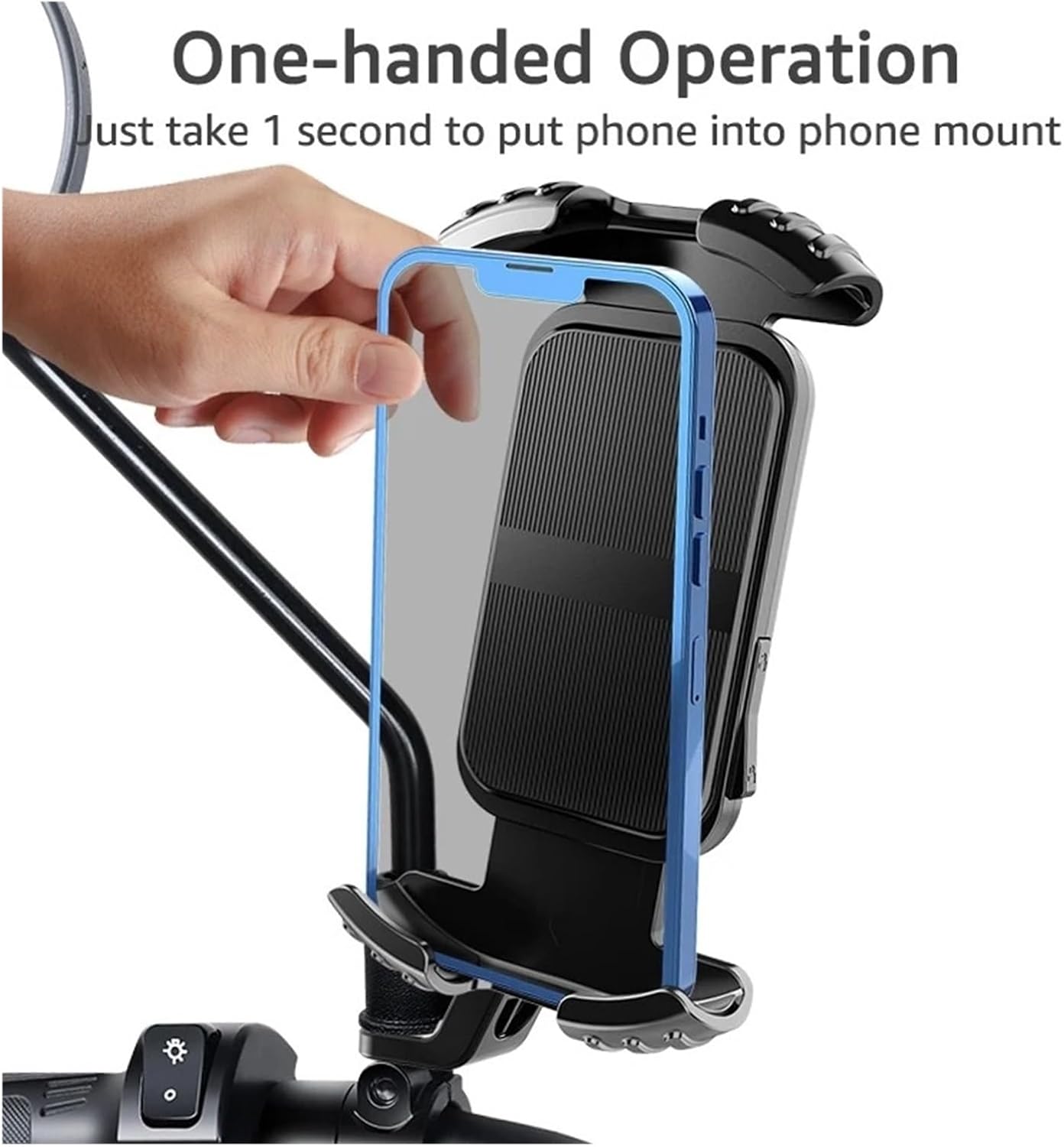 "DescriptionReport ItemERGONOMIC DESIGN (TOOL-FREE INSTALLATION) - The bike phone mount can be easily installed within seconds and easily detached from the handlebar by opening the strap or simply by removing the phone from the silicon bands, ensuring an effortless experience.【Harder and Pressure-Resistant】The EVA multiple layer cold-formed design ensures stronger internal structure, harder shell and more solid shock absorption, not easy to deform.【Unobstructed Operation】Our phone holder doesn't mess with your phone's facial/finger recognition sensor, front camera, charging port, home button, or volume keys.When mounting for the first time, you only need to insert your cell phone, turn the switch and adjust the holder to the correct width. By turning the switch on and off, the cell phone can be attached or removed in 1s. You can capture the beautiful moments of your trip at any time."