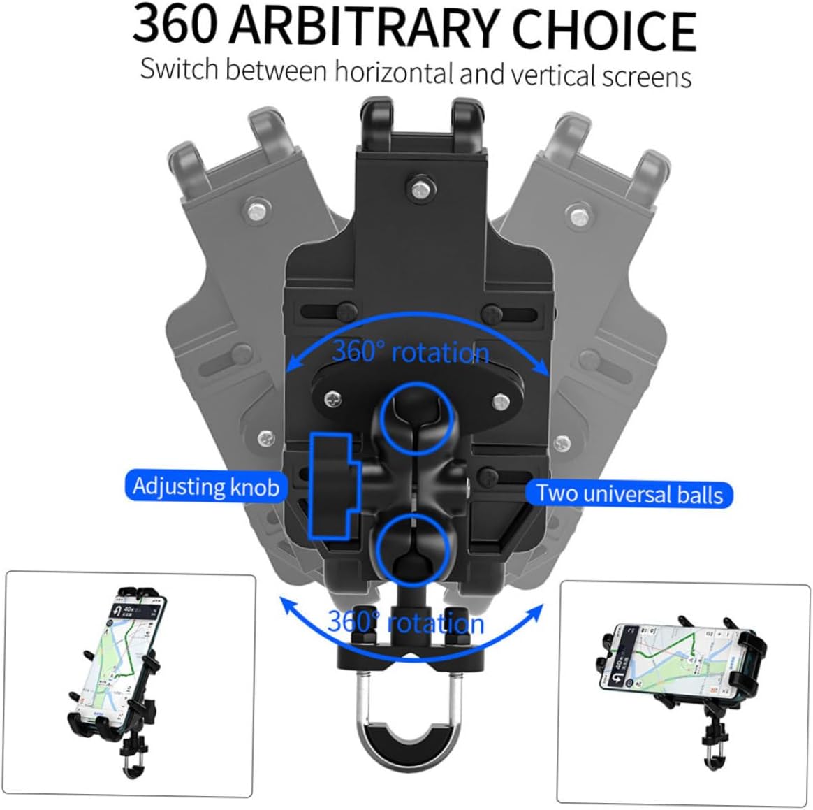 Package List 1 set x phone holder Characteristics - Material: Aluminum and PC. -Product Info:Electric motorcycle mobile phone stand - Size: 15.10 x 7.90 x 5.00cm/ 5.93 x 3.10 x 1.97 inch. - Color: Black. - Do not need to worry about your phone falling off the motorcycle while using the GPS Handlebar Rack. - You can adjust the suitable size with your phone by the gear, and also press the release bars to remove your phone with one simple hand motion. - Aluminum base clamp arm can rotated and adjusted 360 degree to your unique viewing angle Phone Holder. - Simply adjust and secure your phone in any angle and position. Professional and practical design with beautiful appearance, easy to carry and use Phone Mount Holder Devices. - Rubber pads can reduce Smartphone vibration and prevent .Goods InformationPhone Holder 360-degree rotation, flexible and convenient to use anti-slips mats, protect your phone, avoid shaking and skidding.GPS Navigation Bracket Widely compatible with many cell phones used for handlebar of motorcycle.Phone Mount Holder Devices It can make you enjoy music easily when you are outriding, and you can also guide you by navigation