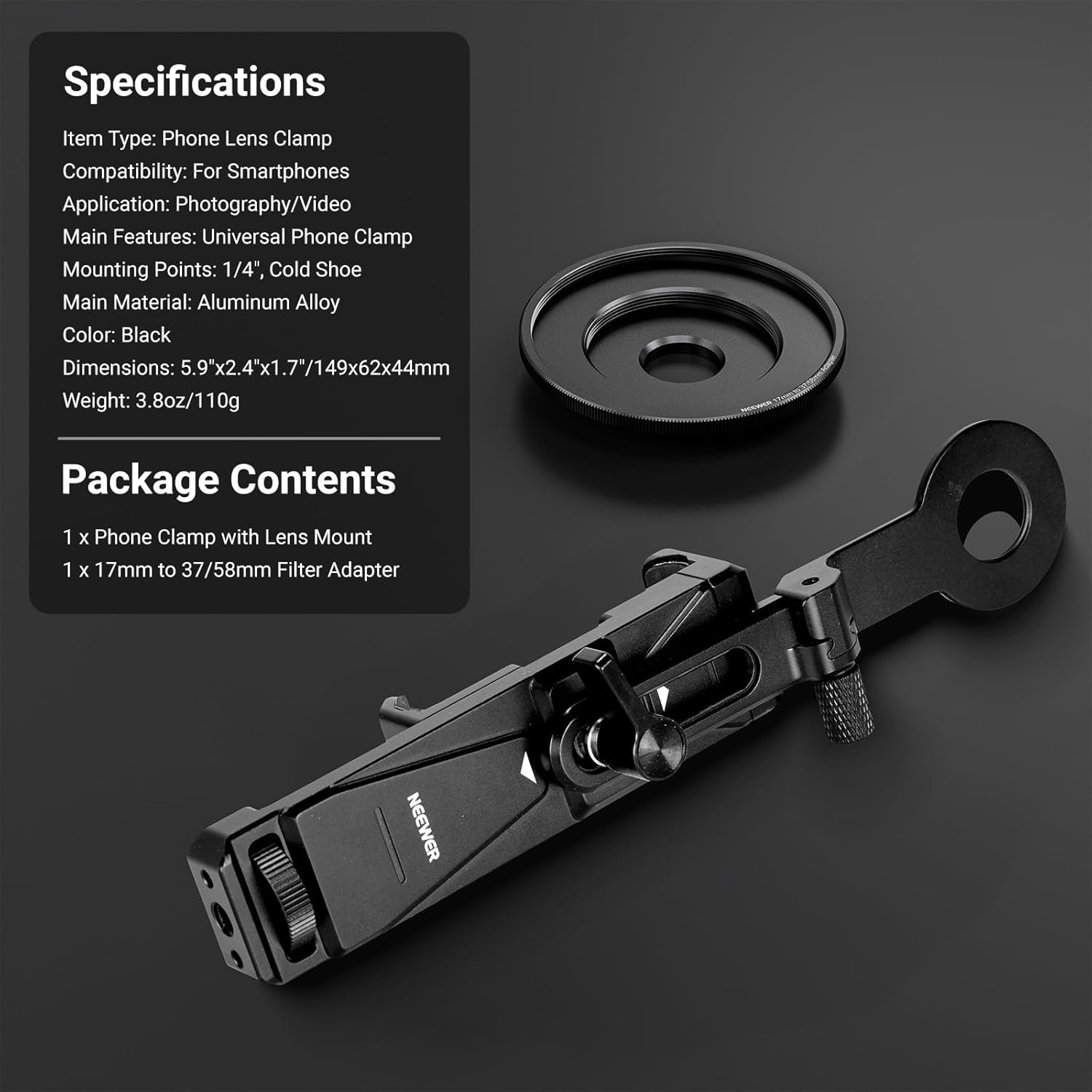 • 【17mm Phone Lens Adapter】 Suits all NEEWER 17mm (M17x1.0) threaded phone lens attachments as a content creator essential influencer must have. Note: Lenses sold separately