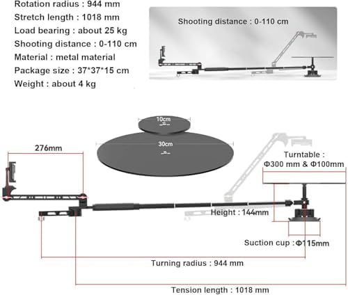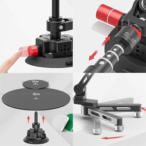 Introducing the Telescopic Rotator, the ultimate tool for content creators looking to elevate their vlogging, event coverage, and product photography. Designed with versatility in mind, this innovative device offers smooth and stable rotation, enabling you to capture professional-quality panoramic videos and photos without the concern of lens shake. Key Features: 1. Compact design that enhances your panoramic shooting experience. 2. Horizontal surround shooting capabilities for immersive visuals. 3. Top-down shooting option, perfect for flat lays and detailed product shots. 4. Smooth and silent operation, ensuring an unobtrusive shooting environment. 5. Lightweight and portable, making it easy to take on the go. 6. Multi-axis adjustability eliminates shooting dead angles for comprehensive coverage. 7. Manual all-around shooting provides flexible creative control over your compositions. 8. Telescopic feature allows you to shoot at distances from 0 to 110 cm, accommodating various scenes. 9. Convenient suction cup design ensures secure placement on multiple surfaces. 10. Multi-bearing construction enhances stability for flawless shots. 11. Removable turntable design simplifies transportation and setup. 12. Two base options cater to different shooting applications and preferences. 13. Ideal for capturing dynamic and engaging photography that stands out. Specifications: - Name: 360 Degree Photography Turntable Kit - Material: Durable Aluminum Alloy - Turntable Size: φ300mm/φ100mm - Height: 144mm - Suction Cup Diameter: 115mm - Rotation Radius: 944mm - Stretch Length: 1018mm Packing List: 1 X Professional Panoramic Shooting Camera Spinner Whether you're a professional photographer or a passionate vlogger, the Telescopic Rotator will help you create stunning visuals that captivate your audience. Elevate your content creation game today with this essential tool!
