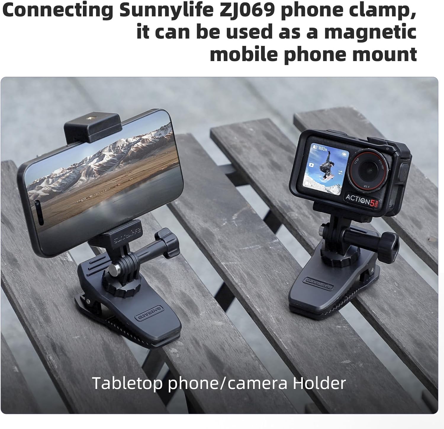 Road Trip Ready Clip it to your car’s sun visor for stable dash-cam footage or hands-free driving vlogs. The anti-slip grip ensures your Action 5 Pro stays steady even on bumpy roads, while the 360° rotation lets you frame scenic highways or in-car reactions effortlessly. Bike & Outdoor Adventures Mount it on bicycle handlebars, backpacks, or hiking poles to film heart-pumping POV rides or trail explorations. The magnetic base instantly locks onto bike frames or park benches, letting you set up shots in seconds—no tools needed. Urban Content Creation Turn railings, street signs, or metal fences into instant tripods! Attach your camera via the included adapter to shoot trendy time-lapses, street photography, or social media reels from unique angles. The damped ball head eliminates shaky pans for cinematic smoothness.