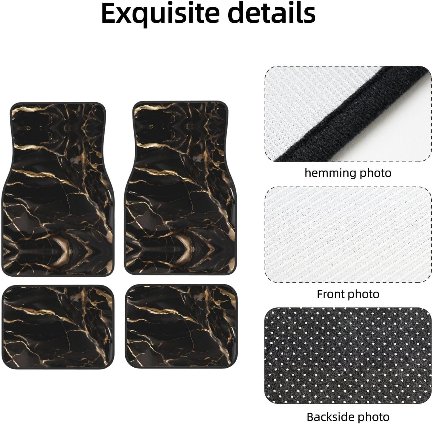 Add a touch of elegance to your car. Our Black Gold Marble Black Gold Marble printed car mats are light-resistant and stay colorful even in the hot sun. They are tightly woven, soft and firm to the touch, easy to clean, and can be easily rinsed to remove stains and keep your car clean. The drop-molding process on the bottom not only prevents dust from entering, but also simplifies the installation process. The non-slip design ensures stability in any driving situation, ensuring your safe driving. Suitable for a variety of models, whether it is a car, truck or van, this mat can perfectly blend with your interior style.