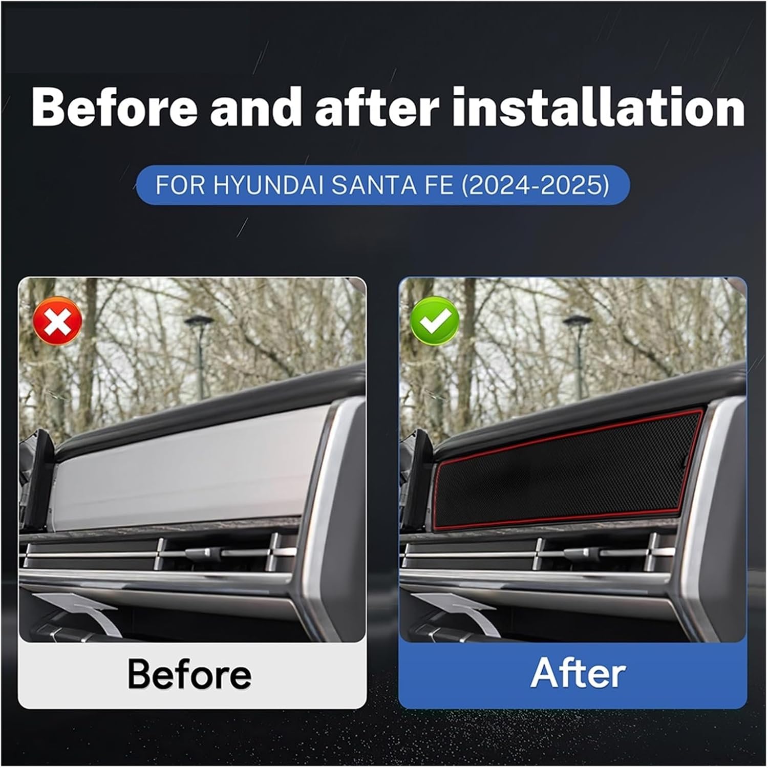 Product Description:Perfect : Designed exclusively Compatible with the 2024-2025 Compatible with Hyundai Santa Fe (Left Hand Drive).Durable & Practical Made from flexible PVC material Compatible with easy drop-in installation, effective anti-slip grip, and simple cleaning.Confirm Compatibility: Unsure if this fits your Santa Fe? Contact us before to verify. Thank you!==========: NoneOrigin : Mainland ChinaWelcome to our store! We offer a wide selection of genuine and compatible high-quality parts for various car brands. From engine components to body accessories, our professional team will provide you with precise matching suggestions, ensuring your car repair is worry-free.
