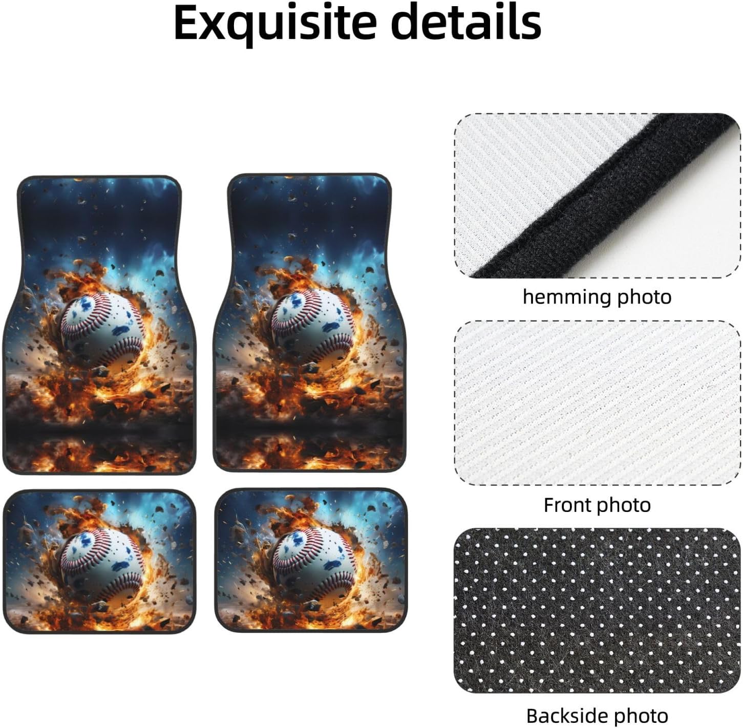 Add a touch of elegance to your car. Our Hot Baseball Hot Baseball printed car mats are light-resistant and stay colorful even in the hot sun. They are tightly woven, soft and firm to the touch, easy to clean, and can be easily rinsed to remove stains and keep your car clean. The drop-molding process on the bottom not only prevents dust from entering, but also simplifies the installation process. The non-slip design ensures stability in any driving situation, ensuring your safe driving. Suitable for a variety of models, whether it is a car, truck or van, this mat can perfectly blend with your interior style.