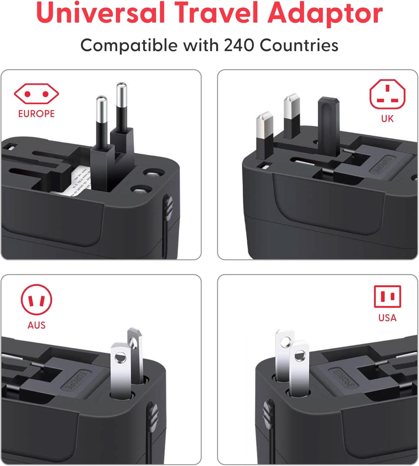 Worldwide Travel Adapter with USB and Type C port. A perfect travel essential to charge multiple devices while travelling bundled with Europe Travel SIM Card. POWER & DATA In European Countries – Use the adapter and SIM Card bundle across all european countries, helping you stay charged and online for vacations, business trips, cruises or study abroad without hunting for local SIM shops.