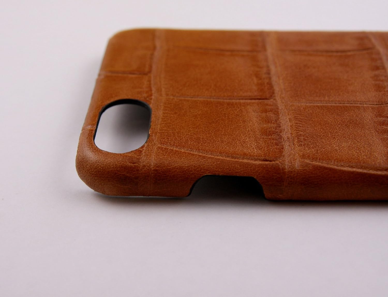 This smartphone cover is made of medium size cowhide leather and has been embossed with alligator seeds. The rich moist crocodile pattern adds a wild and gorgeous feel. It also features an amazing texture and luster that is unique to the leather as it ages.