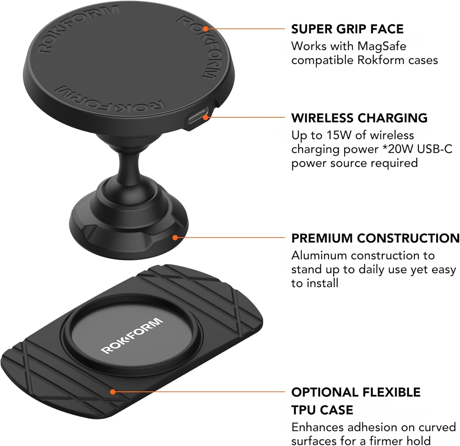Revolutionize your driving experience with the ROKFORM Magnetic Dash Car Charger – the ultimate blend of innovation, functionality, and style. Crafted with premium materials and featuring cutting-edge technology, this car charger and mount is designed to complement your active lifestyle while keeping you connected on the road. Experience the difference for yourself and take your driving setup to the next level with ROKFORM.