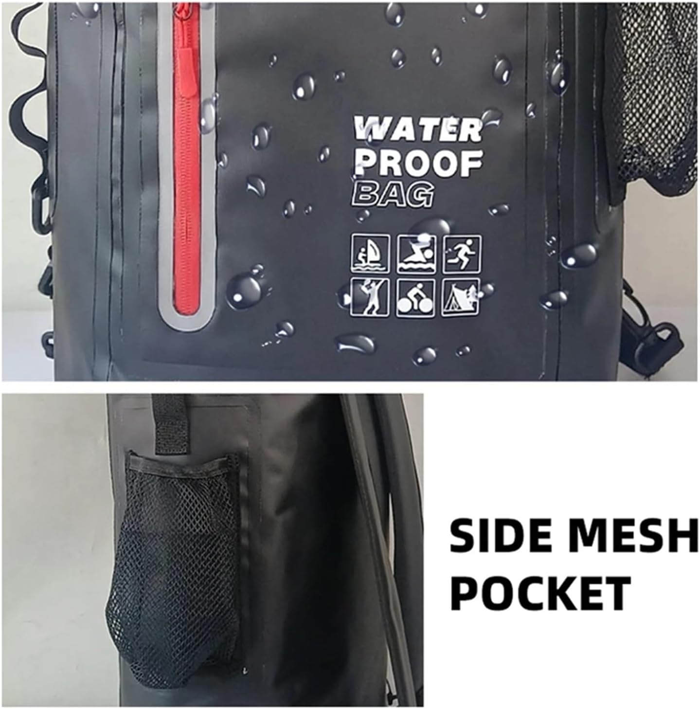 Drifting PVC Mesh Bags Waterproof Phone Pouch Floating Boating Kayaking Camping Bags for Outdoor SwimmingFeature:1. Front independent waterproof zipper pocket clear touch screen for mobile/phone bag /small things storage pocket2. Molle system design on both sides for capacity expanding3.reflective strip design to keep your safty at night 4.High frequency seamless hot pressing for high waterproof quality5.side mesh pock for water bottle 1.Name: Outdoor Diving Foldable Storage Beach Swimming Bag Rafting River Camping Trekking traveling Backpack large capacity camping hiking backpack 2.Material quality: 500D+PVC 3.Weight about 0.8KG4. Size: Size after folding: 46*15.5*30