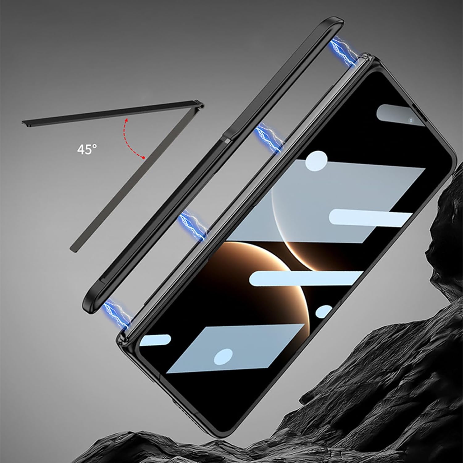 Product material: PCMagnetic adsorption hinge protection for long-lasting durabilityPractical bracket function makes your travel more convenientAll inclusive protective case with built-in screen protector filmUltra thin hard phone case, comfortable to touch, anti-fingerprint and anti-scratchExcellent grip and exquisite appearanceThe packaging includes: 1 x Case