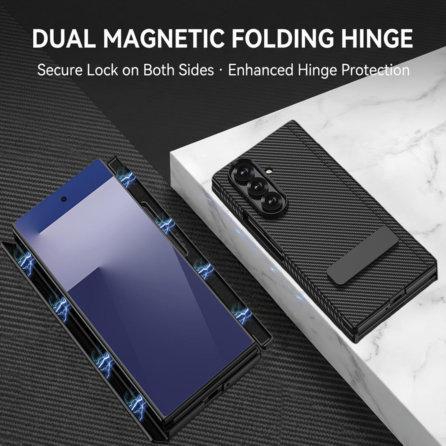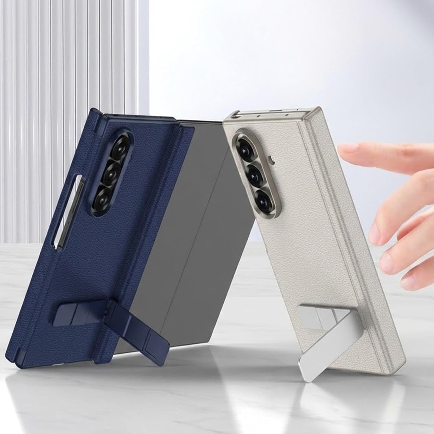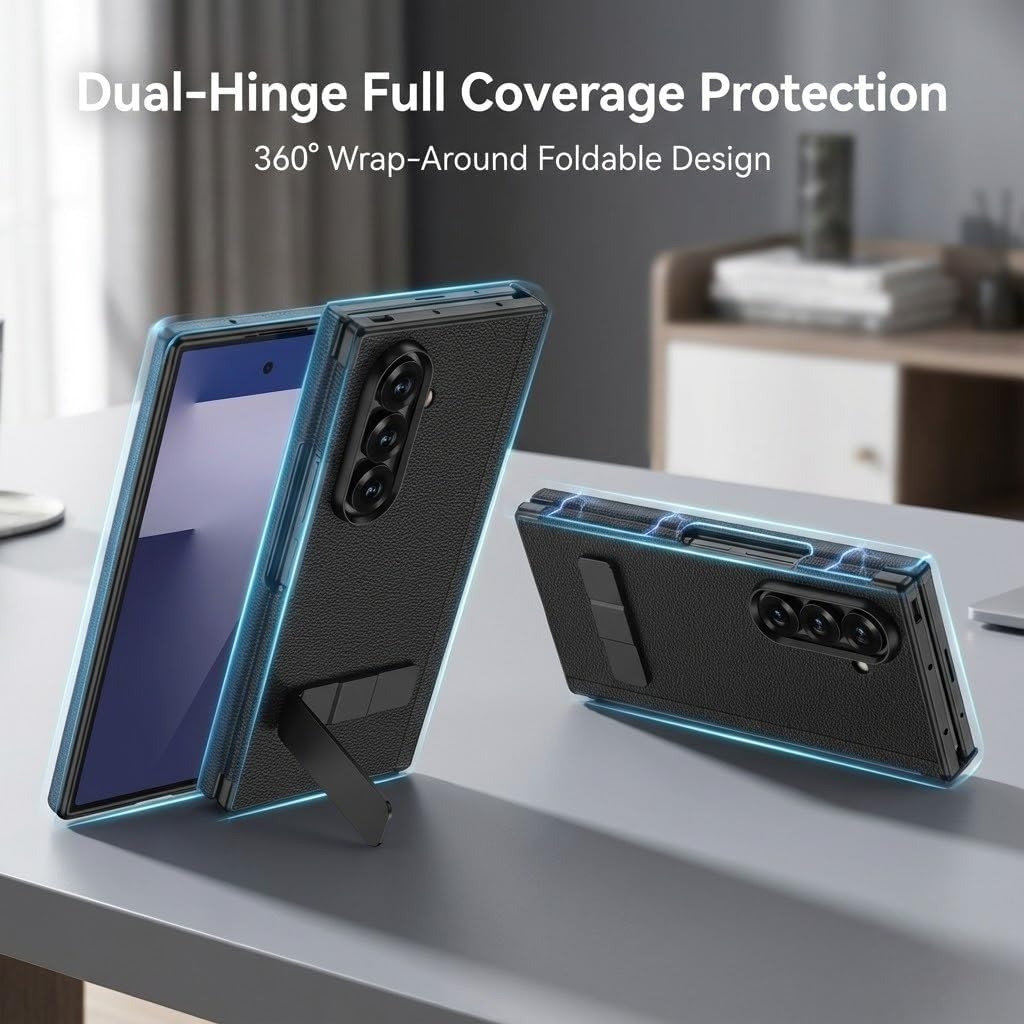 Minimalist Protection for Your 2025 Z TrifoldIf you’re looking for a balanced combination of protection, functionality, and slim design, this case is an ideal everyday companion for your Samsung Galaxy Z Trifold.[ 270° FREESTYLE STAND ] Stop propping your phone against coffee cups. Our integrated 270-Degree Adjustable Stand offers rigid support.Vertical Mode: Perfect for video calls and reading.Horizontal Mode: Ideal for cinematic viewing.Foldable: Tucks away completely flat when not in use.[ DUAL-HINGE ARMOR ] The Z Trifold has two fragile hinges. Our Dual Magnetic Hinge Covers slide automatically as you fold the device, offering gap-free protection for the spine.[ LUXURY LEATHER TOUCH ] The premium vegan leather back provides a warm, comfortable grip that resists sweat and fingerprints, making it perfect for daily business use.Specifications:Compatibility: Samsung Galaxy Z Trifold (2025 New Model)Type: Cover with Hinge Protection Stand: 270° AdjustableMaterial: PC + Vegan LeatherBox Contents: 1 x Leather phone Case