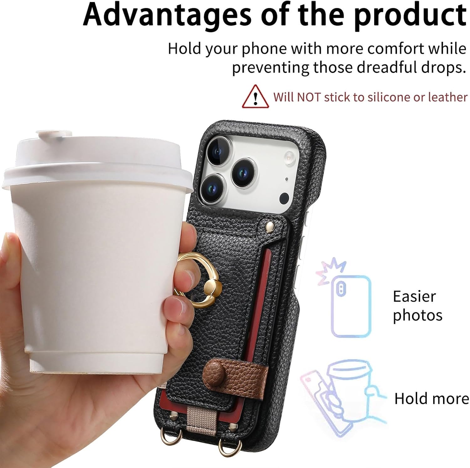 This wallet case simplifies your carry—combining, convenience, and reliable protection.Made from refined PU leather, it keeps your essentials in one stylish, easy-to-carry design.Whether for daily errands, commuting, or travel, this crossbody phone case offers hands-free comfort while keeping your phone and cards secure.Premium Aesthetics– Fine-grain leather surface– Reinforced stitching details– Sleek, structured appearanceProduct HighlightsDetachable crossbody strap360° rotating metal ringSecure card and coin pocketDurable leather constructionEasy access to ports and buttonsPackage Includes:1 × Wallet Case with Detachable Strap