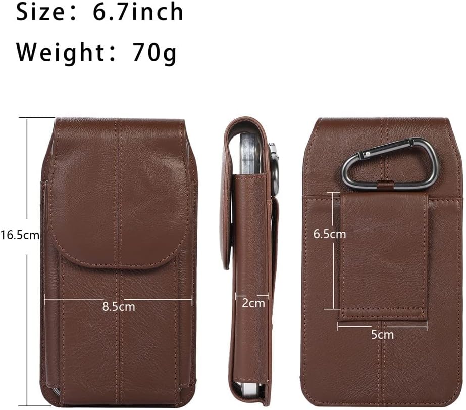 Made of genuine leather.Soft and light weight.Men's waist belt phone bag for outdoor activities.Magnetic metal buckle closure.Shockproof, anti-scratch, conveniently to use for all smartphones in the market.Specifications:: Wallet CaseMaterial: PU Leather.Size:6.7 inch, inner size 16.5x8.5x2cm): fit smartphones equal or under 6.7 inchPackage includes: 1x Wallet CaseREMIND:After receiving the package, please check the package and the product carefully. If the item you received is defective or you have any questions, please us by email to resolve the issue.More space and credit cards slots allow you to storage daily small item.Small cross body purse option for outdoor use , multi-function design, which is practical and fashionable