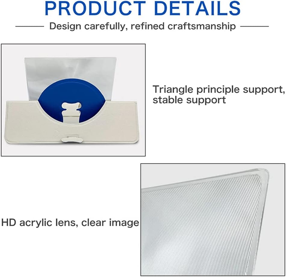 5D stereo effect, super clear 5D cinema visual effect, which is easy to use, no double image, no fatigue. The product is simple and easy to carry, light in weight, small in volume, which is suitable for indoor, camping, tourism, leisure and other places. Super clear magnified screen 2-4 times, so that the mobile phone seconds into the cinema. Stable three angle support can firmly support the mobile phone, not easy to fall off, and the comfortable leather texture has anti-skid effect. The smartphone stand magnifier is easy to carry. Parameter: Name: 8-inch phone screen magnifier Product material: leather+PVC Product size: 19*12CM Product packaging: opp bag Single weight: about 120 grams Packing list: 1*Mobile phone amplifier