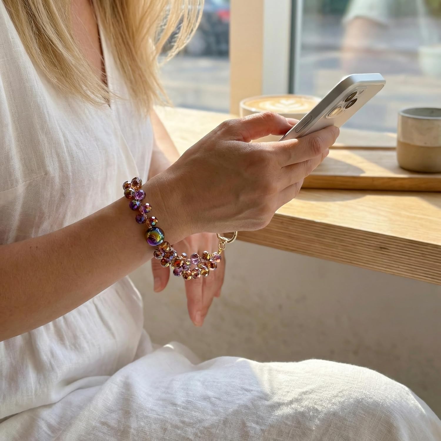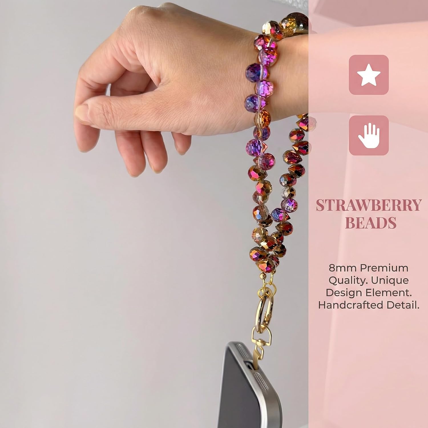 This 2-piece set includes iridescent pearlescent white resin beads and rose red textured crystal phone wrist strap. Handmade beaded phone strap works as a stylish phone charm and anti-lost phone wristlet. Universal for most phones and cases with lanyard hole. Lightweight, durable and comfortable for daily use. Perfect as phone chain and delicate gift.