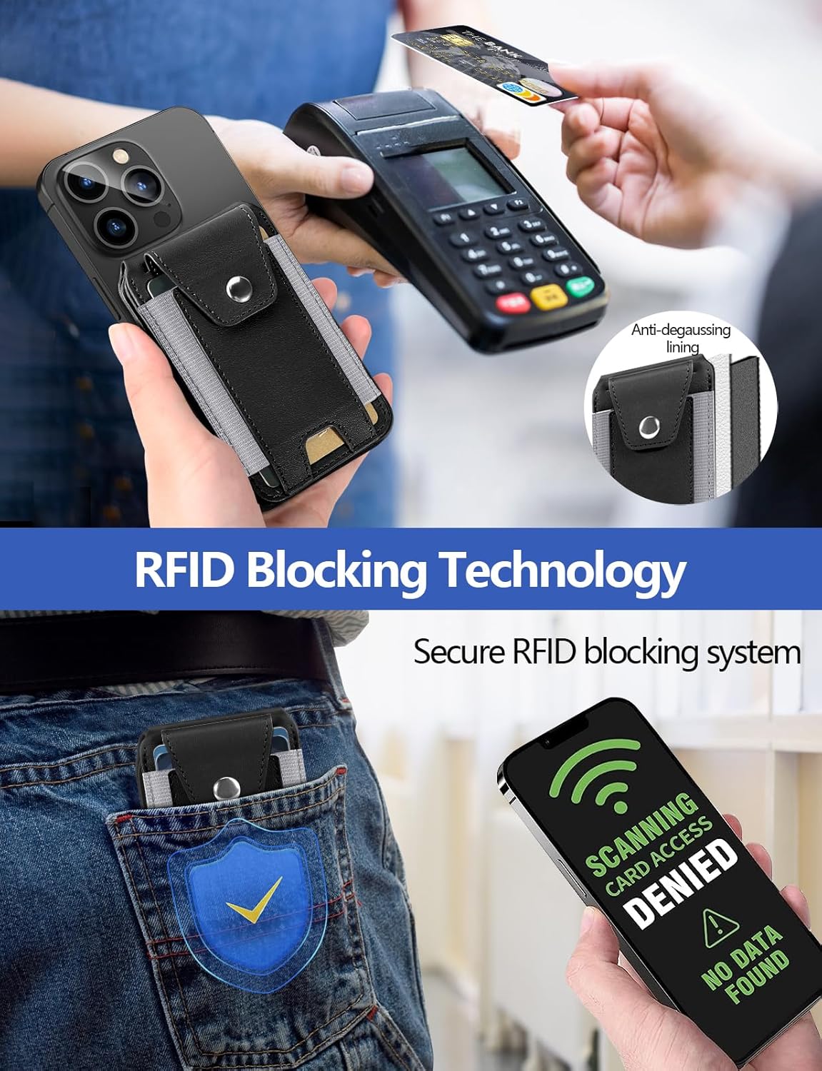 • 【RFID / NFC Blocking】HiWe for Magsafe wallet card holder can block 13.56 MHz or higher RFID signals. The built-in RDIF blocking system can keep your credit cards safe from unauthorized scanners and provides degauss protection for your cards to prevent demagnetization. Keep your identity and property safe when you go shopping, traveling, or working.