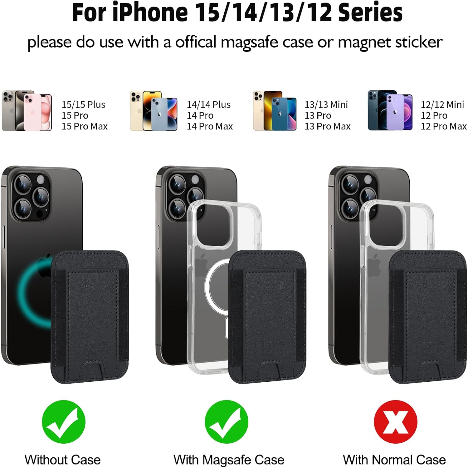 For MagSafe Wallet+ For MagSafe Wallet with Find My Built in, Compatible with iPhone 15/14/13/12 Series Caseless or with Magnetic Cases
