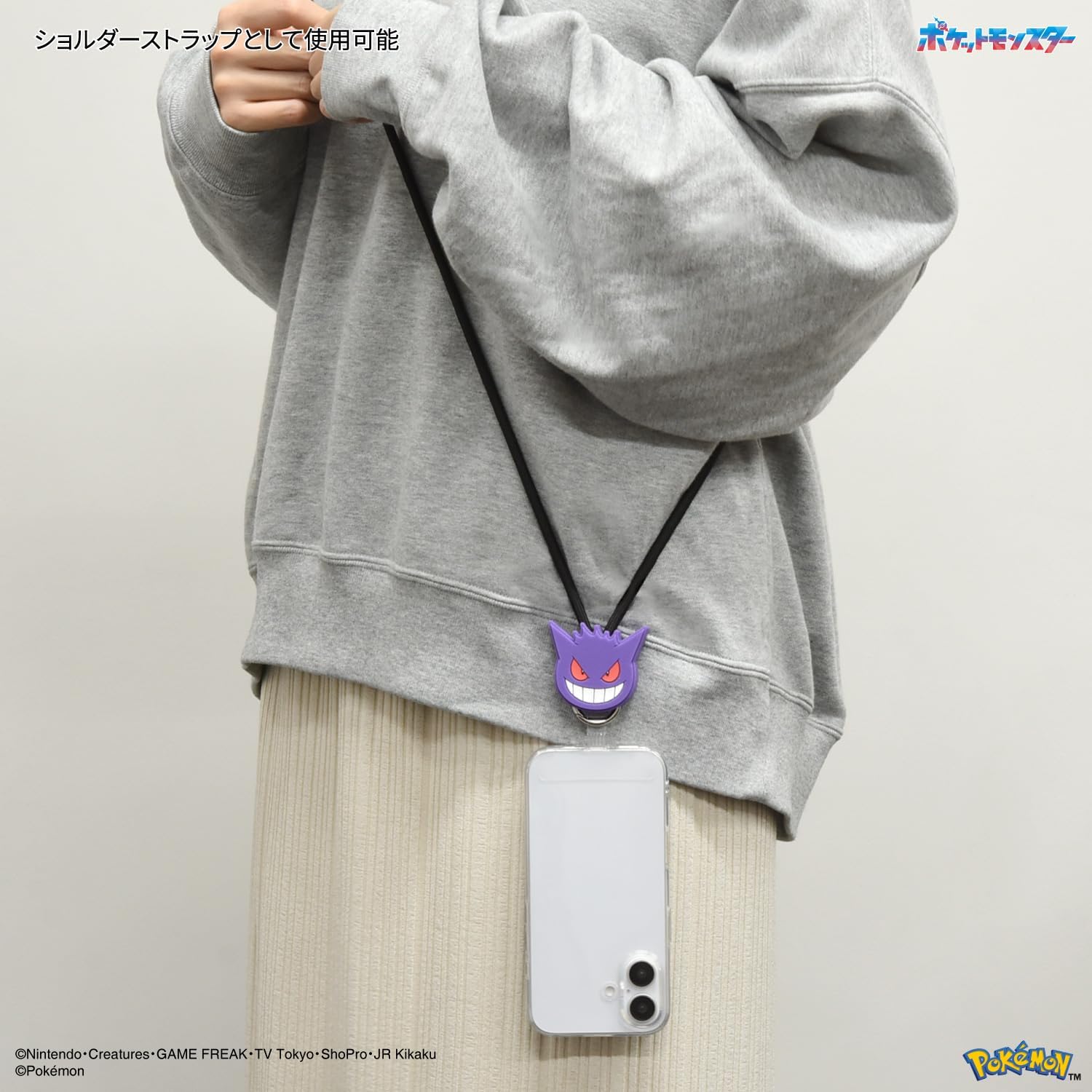 A multi-use smartphone accessory that can be used simply by sanding it inside a smartphone case. Pass your finger through the ring to improve the ability to hold your phone and prevent it from falling out. It can be used for a variety of purposes, such as carrying the ring by hand, or attaching it to your bag or belt loop. Can be used as a smartphone shoulder strap by combining it with the included shoulder strap. The shoulder strap is approx. 29.5 inches (75 cm) when in use, and the length adjustment parts allow you to adjust the length of your choice. Silicone one-point mascot included. This product is recommended to be used in conjunction with a smartphone case with a width of 0.4 to 0.6 inches (10 to 15 mm). Please note that when using in cases other than the recommended dimensions, the product may be easily removed from the charging port. The color of the actual product may differ slightly from the product depending on your monitor settings, lighting in the room. Due to various circumstances, the design and specifications may change without prior notice. © Nintendo, Creatures, Game Freak, TV Tokyo, ShoPro, JR Kikaku © Pokémon.