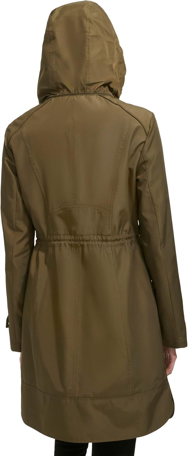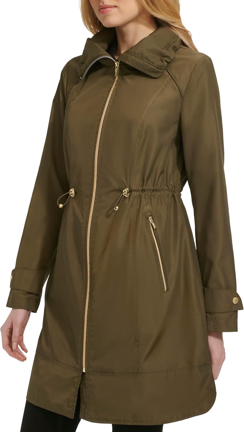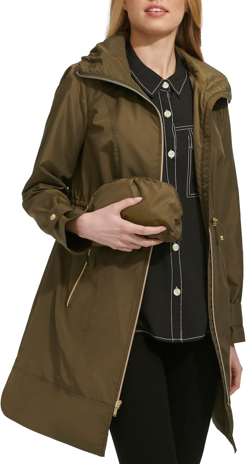 This Cole Haan Women's Outerwear serves as a Trendy and Practicle Rain Jacket that Packs into Matching Pouch and Contains a Stow-Away Hood