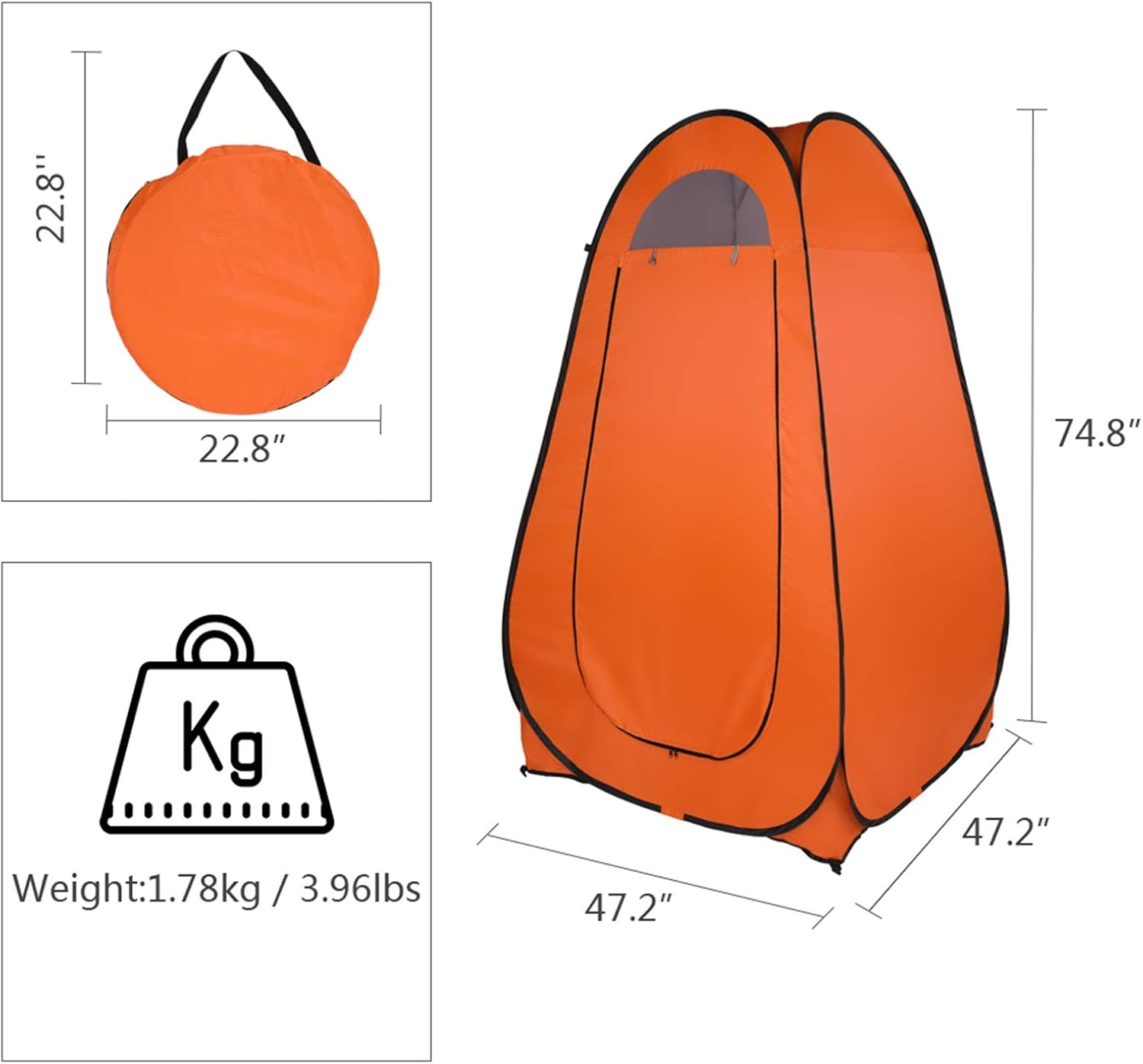 Elevate your outdoor experience with the Portable Pop Up Toilet Shower Tent, the ultimate solution for privacy and convenience during camping, hiking, or beach trips. This versatile shelter is specially designed to meet your needs, whether you're looking for a private shower, a changing room, or a portable restroom.Crafted with high-strength steel wire and durable 180T silver-coated fabric, this tent is built to withstand the elements while providing a reliable and sturdy space. The spacious interior (120cm x 120cm x 190cm) comfortably fits 1-2 people, and the large zipper door ensures easy access. Plus, the built-in interior pocket keeps your personal items organized and within reach.Setting up is a breeze—simply pop it up in seconds, and you're ready to go! When it's time to move, the tent folds into a compact, lightweight round shape, making it easy to carry in the included carrying bag. Complete with 4 metal stakes for added stability, this tent is a must-have for any outdoor enthusiast.Don’t compromise on comfort and privacy during your adventures. Grab your Portable Pop Up Toilet Shower Tent today and make every trip more enjoyable!