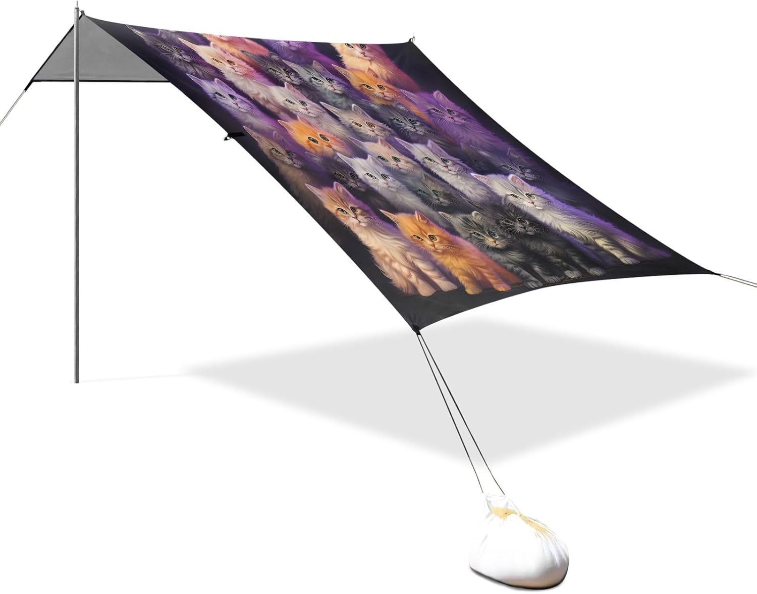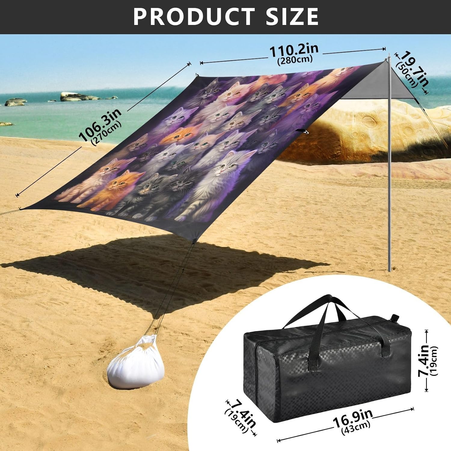 ALAZA Cat Kitten Collection Beach Tent Sun Shelter UPF50+ Protection Beach Shade Canopy w/ 4 Sandbags for Outdoor Camping, Fishing, Backyard Fun, Picnic, 10x9 ft