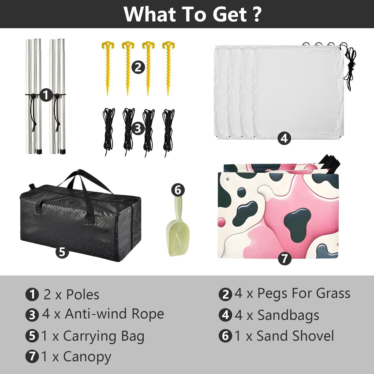 Unpack Cooling trip in 10 minutes! Our 280x320cm beach tent features silver-coated polyester oxford fabric that actively deflects heat while providing UPF 50+ protection-say goodbye to sunburns and squinting! Express your style with eye-catching, tropical-inspired prints that transform ordinary shade into a vibrant oasis. Engineered for stubborn coastal winds, the reinforced frame supports extra guy ropes alongside the included 4 refillable sandbags (use the free shovel!), 4 heavy-duty steel stakes, and 4 reinforced ropes. This high-grade anchoring system laughs at 25mph gusts while you relax. Adventure Beyond Sand: Beach lounging Lakeside camping Park picnics Fishing trips Festival hangouts Backyard "staycations