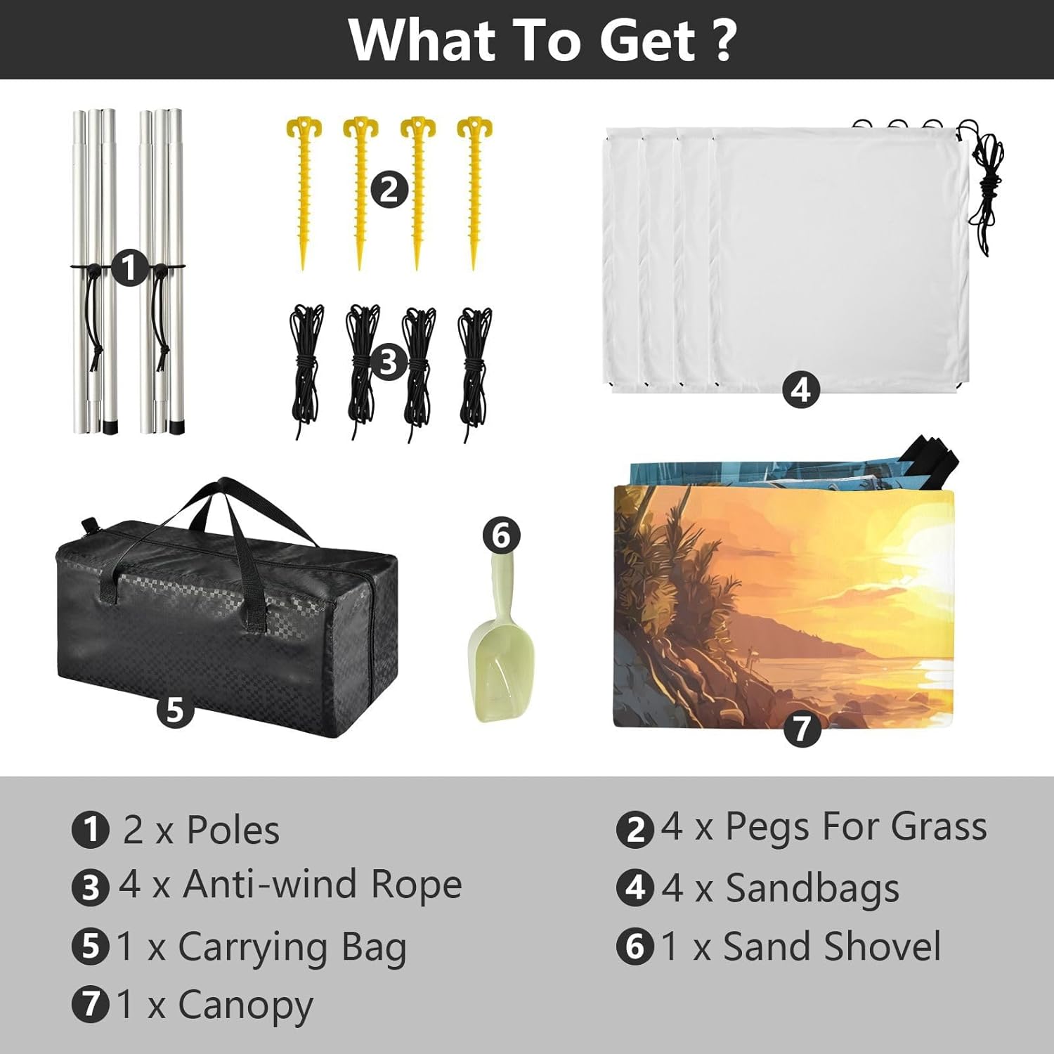 Unpack Cooling trip in 10 minutes! Our 280x320cm beach tent features silver-coated polyester oxford fabric that actively deflects heat while providing UPF 50+ protection-say goodbye to sunburns and squinting! Express your style with eye-catching, tropical-inspired prints that transform ordinary shade into a vibrant oasis. Engineered for stubborn coastal winds, the reinforced frame supports extra guy ropes alongside the included 4 refillable sandbags (use the free shovel!), 4 heavy-duty steel stakes, and 4 reinforced ropes. This high-grade anchoring system laughs at 25mph gusts while you relax. Adventure Beyond Sand: Beach lounging Lakeside camping Park picnics Fishing trips Festival hangouts Backyard "staycations