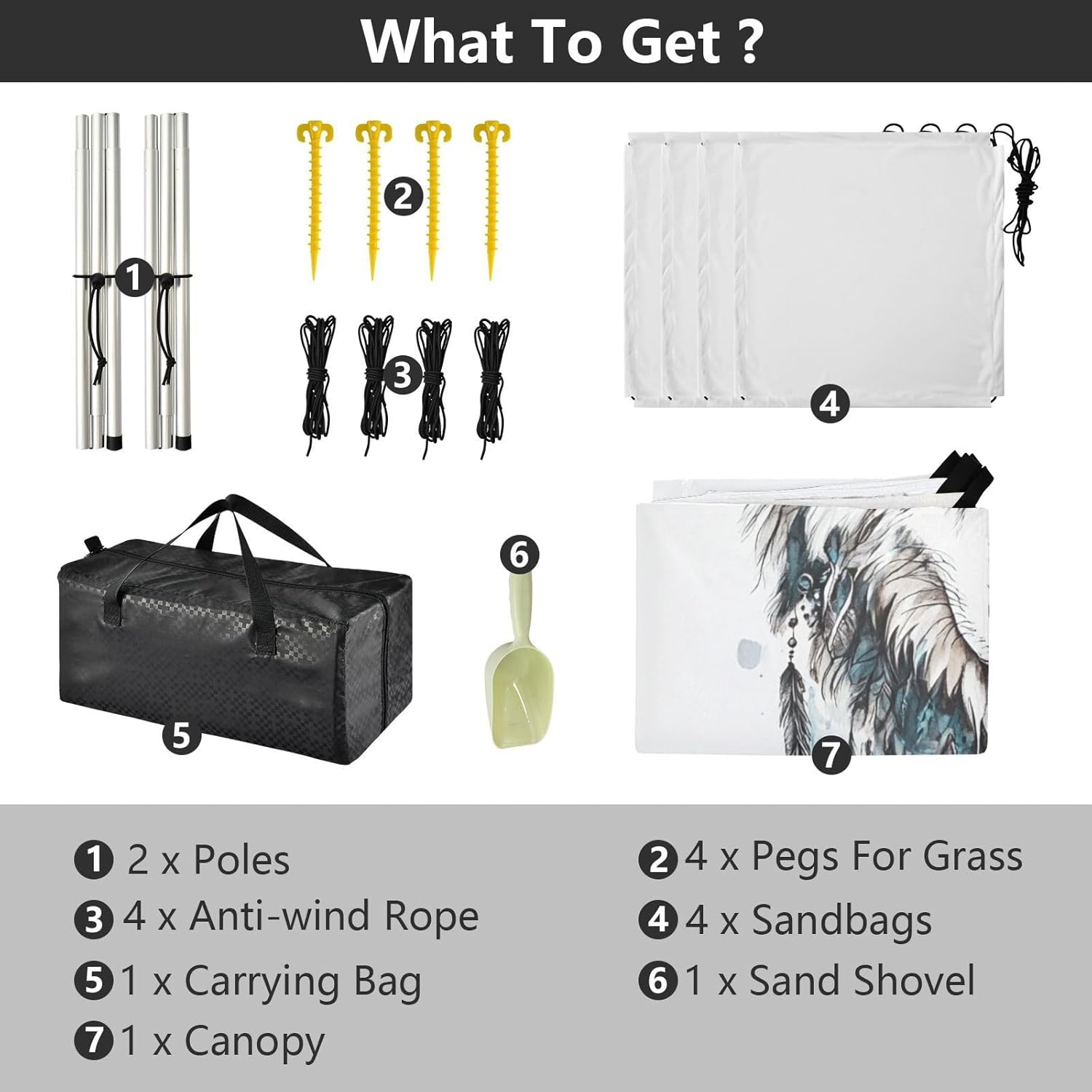 Unpack Cooling trip in 10 minutes! Our 280x320cm beach tent features silver-coated polyester oxford fabric that actively deflects heat while providing UPF 50+ protection-say goodbye to sunburns and squinting! Express your style with eye-catching, tropical-inspired prints that transform ordinary shade into a vibrant oasis. Engineered for stubborn coastal winds, the reinforced frame supports extra guy ropes alongside the included 4 refillable sandbags (use the free shovel!), 4 heavy-duty steel stakes, and 4 reinforced ropes. This high-grade anchoring system laughs at 25mph gusts while you relax. Adventure Beyond Sand: Beach lounging Lakeside camping Park picnics Fishing trips Festival hangouts Backyard "staycations