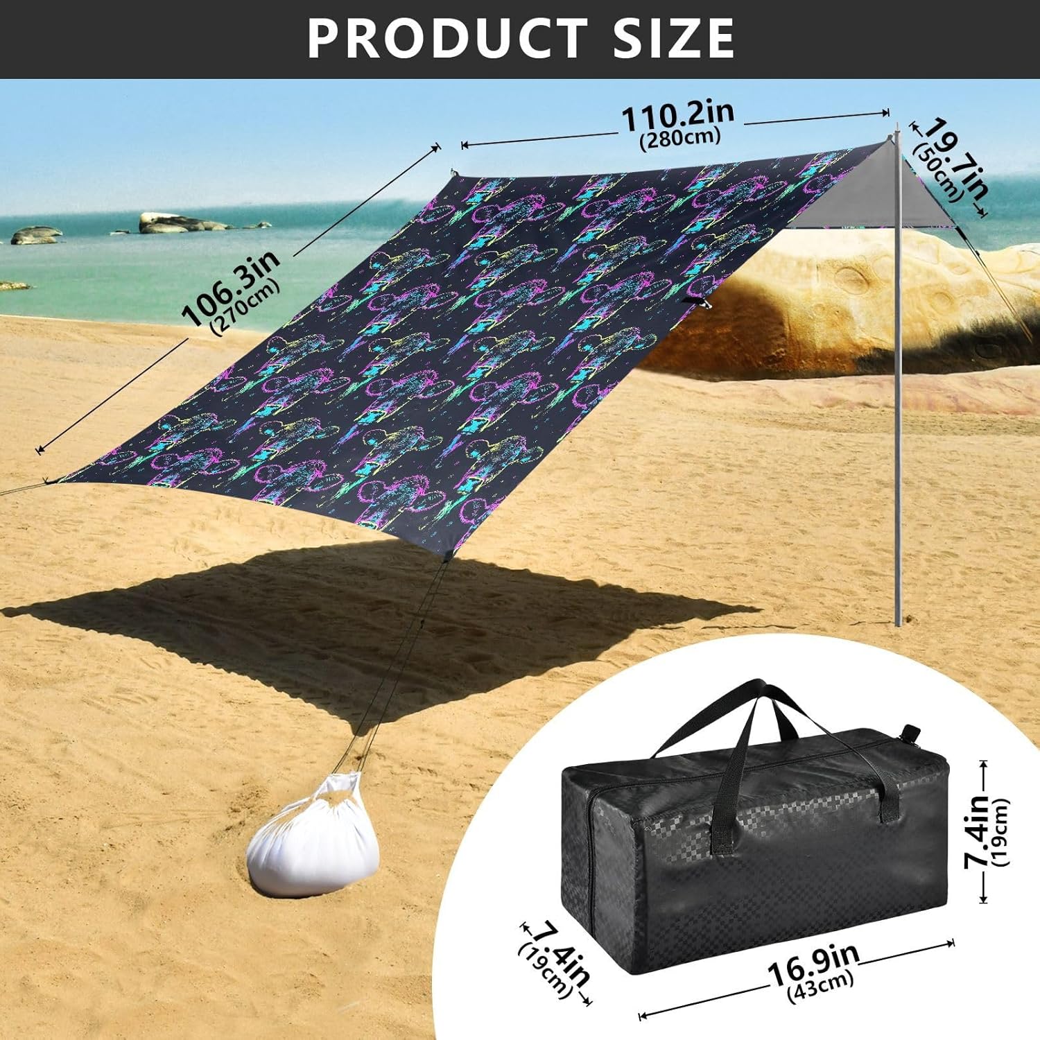 Unpack Cooling trip in 10 minutes! Our 280x320cm beach tent features silver-coated polyester oxford fabric that actively deflects heat while providing UPF 50+ protection-say goodbye to sunburns and squinting! Express your style with eye-catching, tropical-inspired prints that transform ordinary shade into a vibrant oasis. Engineered for stubborn coastal winds, the reinforced frame supports extra guy ropes alongside the included 4 refillable sandbags (use the free shovel!), 4 heavy-duty steel stakes, and 4 reinforced ropes. This high-grade anchoring system laughs at 25mph gusts while you relax. Adventure Beyond Sand: Beach lounging Lakeside camping Park picnics Fishing trips Festival hangouts Backyard "staycations