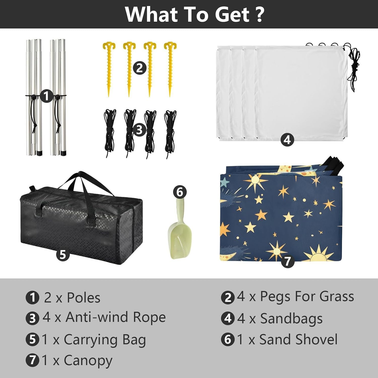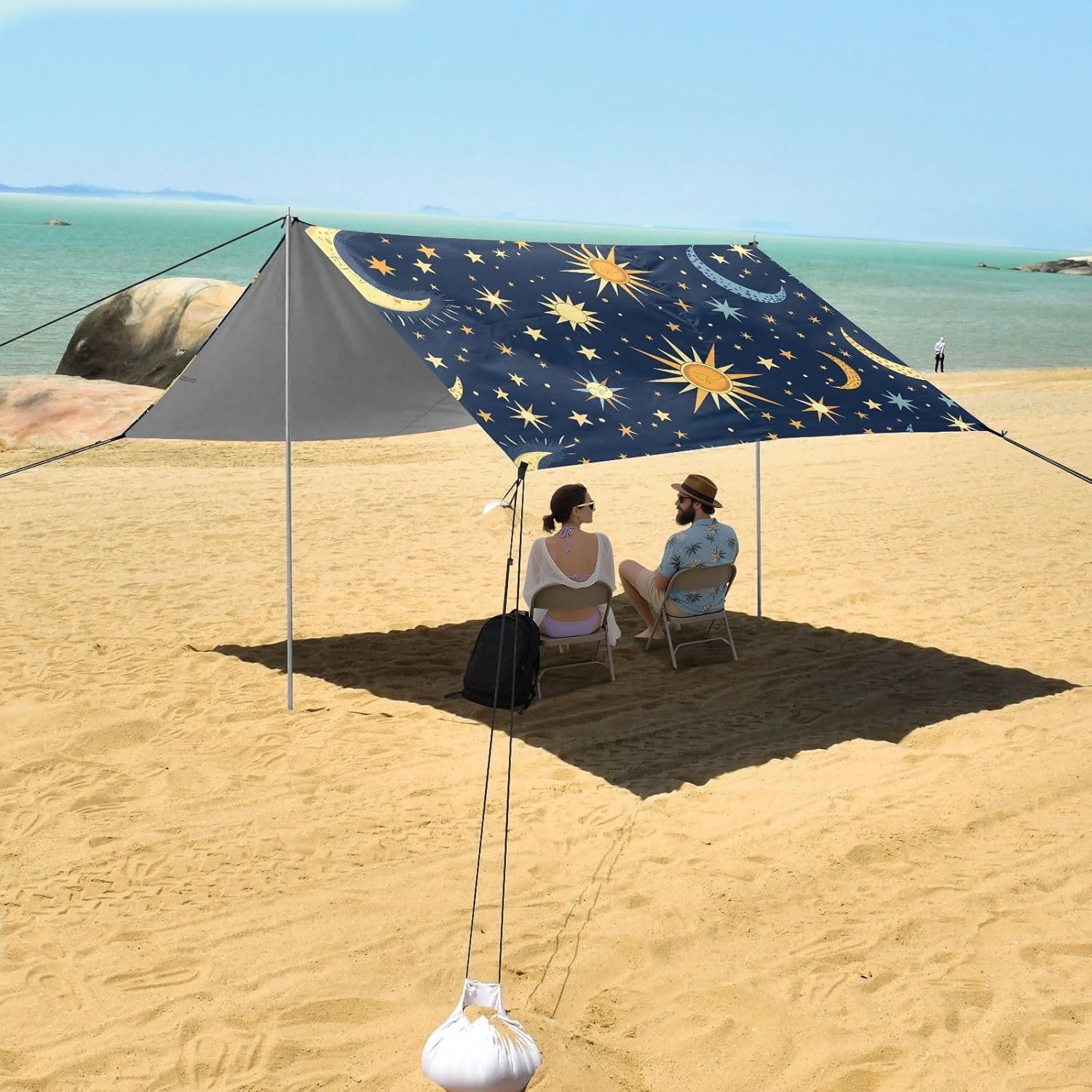 Unpack Cooling trip in 10 minutes! Our 280x320cm beach tent features silver-coated polyester oxford fabric that actively deflects heat while providing UPF 50+ protection-say goodbye to sunburns and squinting! Express your style with eye-catching, tropical-inspired prints that transform ordinary shade into a vibrant oasis. Engineered for stubborn coastal winds, the reinforced frame supports extra guy ropes alongside the included 4 refillable sandbags (use the free shovel!), 4 heavy-duty steel stakes, and 4 reinforced ropes. This high-grade anchoring system laughs at 25mph gusts while you relax. Adventure Beyond Sand: Beach lounging Lakeside camping Park picnics Fishing trips Festival hangouts Backyard "staycations