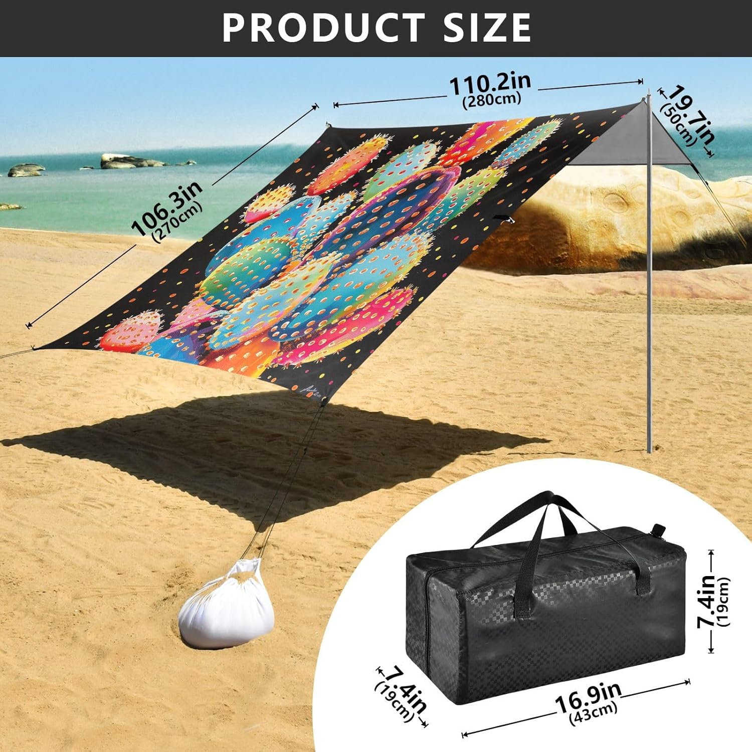 Unpack Cooling trip in 10 minutes! Our 280x320cm beach tent features silver-coated polyester oxford fabric that actively deflects heat while providing UPF 50+ protection-say goodbye to sunburns and squinting! Express your style with eye-catching, tropical-inspired prints that transform ordinary shade into a vibrant oasis. Engineered for stubborn coastal winds, the reinforced frame supports extra guy ropes alongside the included 4 refillable sandbags (use the free shovel!), 4 heavy-duty steel stakes, and 4 reinforced ropes. This high-grade anchoring system laughs at 25mph gusts while you relax. Adventure Beyond Sand: Beach lounging Lakeside camping Park picnics Fishing trips Festival hangouts Backyard "staycations