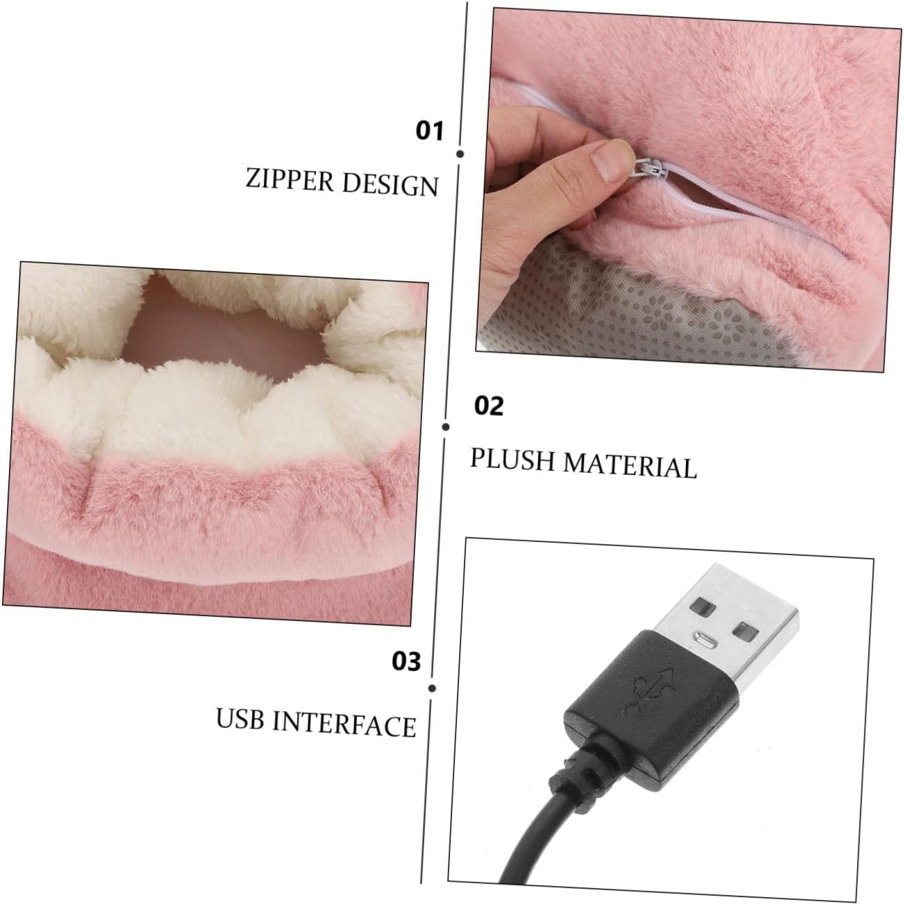 Package Include 1 x Foot Warmer 1 x USB Cable Features - Material: EVA and plush. - Voltage: 5V heated pads for shoes. - Current: 2A electric foot warmers for cold feet. - Power: 10W heated slippers. - Note: It can be disassembled and cleaned (remove the heating elements) heated slipper. - Note: Note that you cannot use a computer or laptop for charging heating thermal shoes. -Product Info:Foot Warm Treasure - Plug: USB interface foot warmer pink USB plug. - It is designed to keep your feet warm in the cold winter, no worry it'll scald feet heated foot warmers. - This heating shoe is mainly made of comfortable plush materials, durable for use. - Constant temperature 50-60℃ electric heated slippers foot. - Winter heating foot warmer with lovely shape design, convenient to put feet into it, easy to keep you warm. USB heating slippers - Fast heating, easy and fast to warm your feet in winter. Bring you a warm winter heated electric foot warmer. - Charging with USB. When you need to use it, you just plug it in, very safe and convenient foot warmer usb.Goods Descriptionheated foot warmer This is a professional and durable foot warmer.heating shoes winter Fast heating, easy and fast to warm your feet.foot warmer This foot warmer is safe to use, no worry it'll scald feet.heated foot warmers Made of quality and no odor materials, it is durable for use.foot warmers for shoes Winter heating shoe is convenient to put whole feet into it, easy to keep you warm