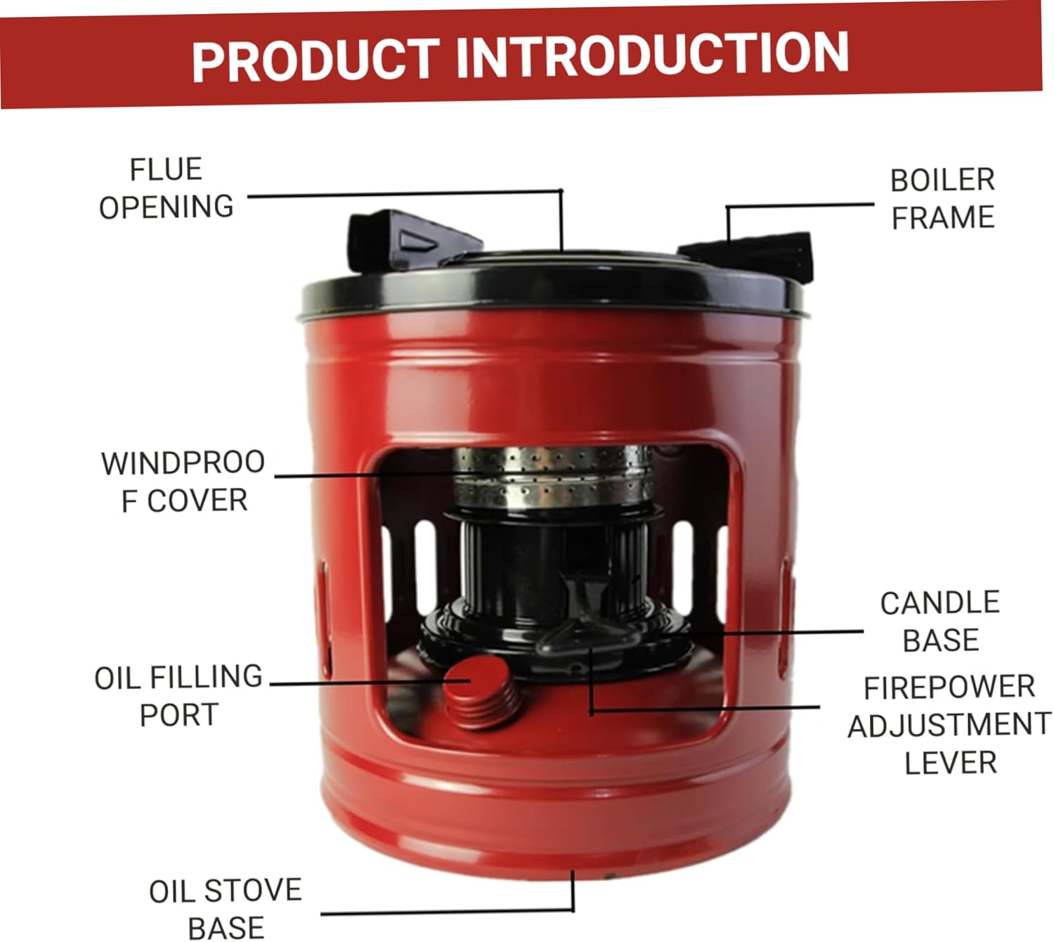 Description: Kerosene Stove, 8.3x8.7" Iron Small Kerosene Heater with 8 Cotton Wick, Windproof Portable Indoor Burner Stove Camping Accessories for 2-4 People combines compact design and powerful heating performance, making it ideal for both indoor use and outdoor activities like camping and hiking; featuring a iron body sized for portability, this mini kerosene heater ensures warmth for small groups while equipped with 8 cotton wicks for reliable, long-lasting fire, its windproof construction steady flame even in outdoor windy environments, making it a dependable portable kerosene heater suitable as essential camping and outdoor accessories for anyone needing efficient, easy-to-use heat on the go. Features:. Kerosene Stove. -Color: Red. -Material: Iron. -Size: about 21x22cm/8.27x8.66inch. Note:Manual measurement, please allow slight errors on size.The colors may exist slight difference due to different screens. Package Including 1Pcs Kerosene Stove