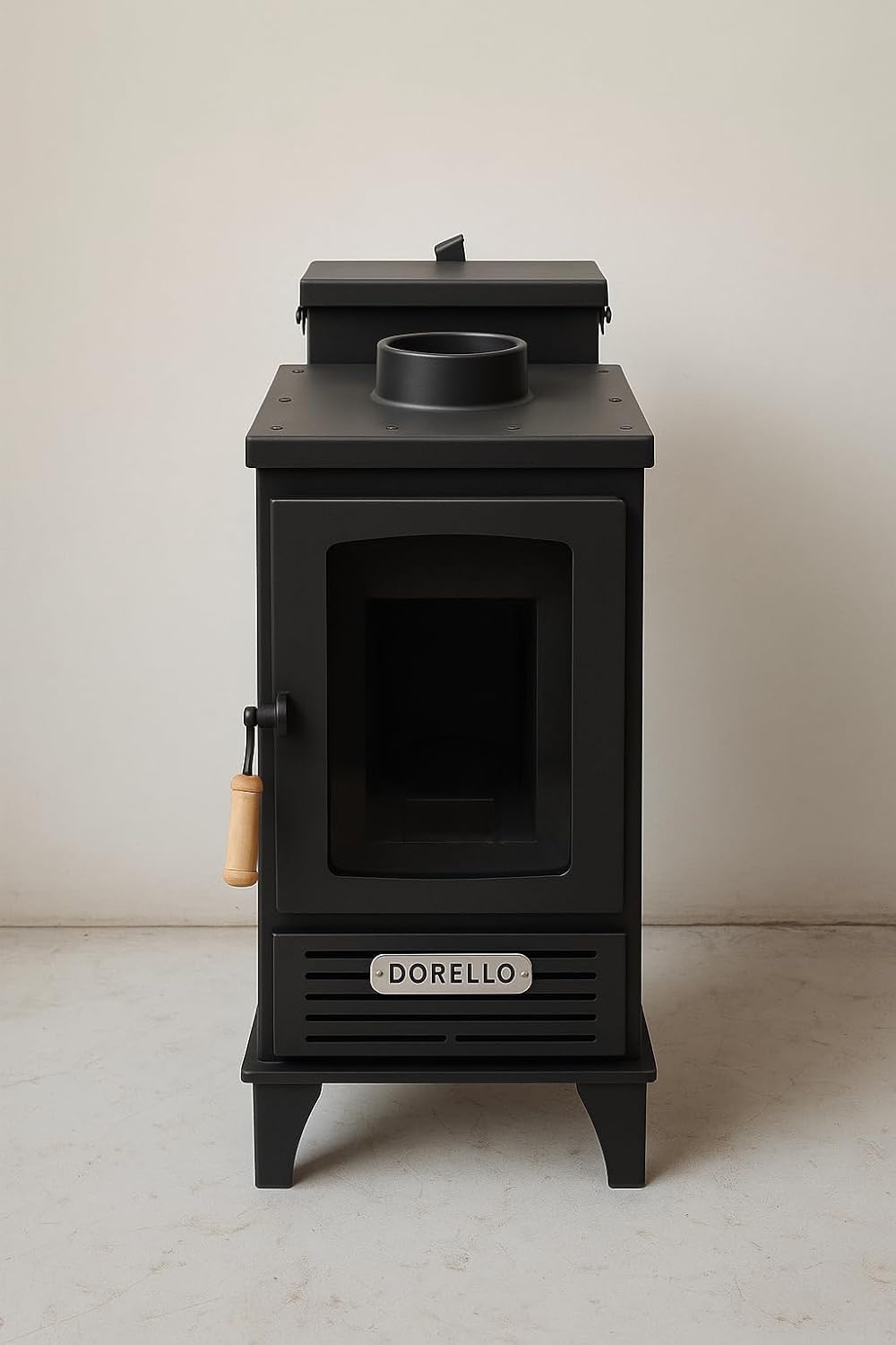The Dorello Portable Wood Burning Camp Stove is a heavy-duty cast iron stove built for outdoor enthusiasts who demand reliable heat wherever their adventures take them. Featuring a large glass door panel and side windows, this stove lets you enjoy the mesmerizing glow of a real wood fire while keeping warmth contained and controlled. The classic ribbed cast iron body is both rugged and stylish, making it a great fit for camping tents, cabins, or any off-grid shelter. A top flue outlet allows for easy chimney pipe connection, while the bottom ash drawer makes cleanup simple and convenient. The decorative metal floor plate included beneath the stove adds an extra layer of protection for your flooring. Whether you're braving cold nights in the wilderness or cozying up in a rustic cabin, the Dorello Camp Stove delivers dependable, radiant warmth with timeless charm. Please ensure proper ventilation when using indoors and follow all local fire safety guidelines.