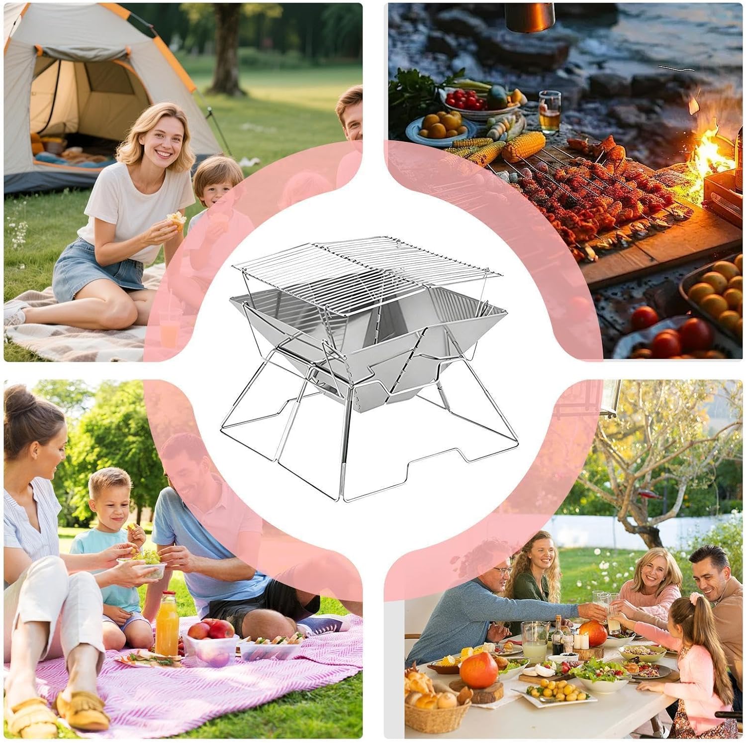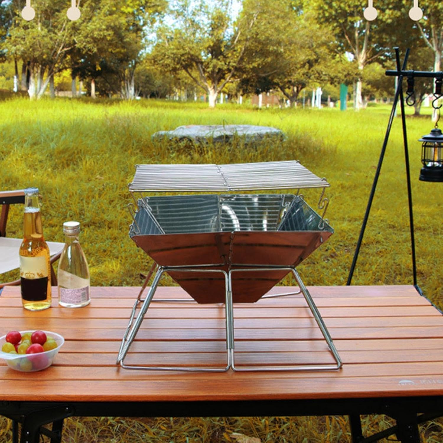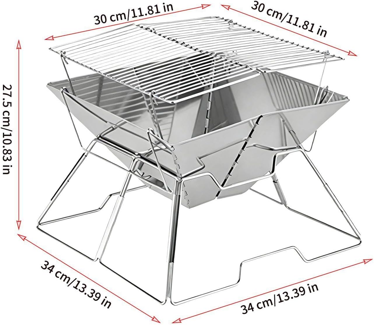 | Portable camping charcoal stove is designed to make meal prep easier in various outdoor environments. Constructed from reliable stainless steel, this folding gear delivers solid performance while remaining easy to carry. Ideal for backpacking trips, it fits perfectly into your travel plans, making cooking efficient during picnics or gatherings in the garden. Whether on the patio or in the backyard, this portable stove supports family meals, friendly encounters or romantic dinners with your boyfriend. Its compact and versatile design caters to couples and friends who enjoy outdoor adventures. Lightweight sturdy, the portable charcoal stove enhances convenience without compromising functionality, delivering memorable experiences wherever you travel. Perfect for those who value practicality, it unites people over shared meals in quaint outdoor settings. Specification Material: stainless steel. Product size: after assembly: approximately 34 x 34 x 27.5 cm/13.39 x 13.39 x 10.83 inches. Mesh size for : approximately 30 x 3 0 cm / 11.81 x 11.81 inches. Product weight: about 2000g Packing list: 1 x camping barbecue grill (not installed). 1 x storage box. Note: 1. Due to lighting effects and viewing angles, there may be color differences in the product. 2. Due to manual measurement, there may be errors in the product size, please understand.