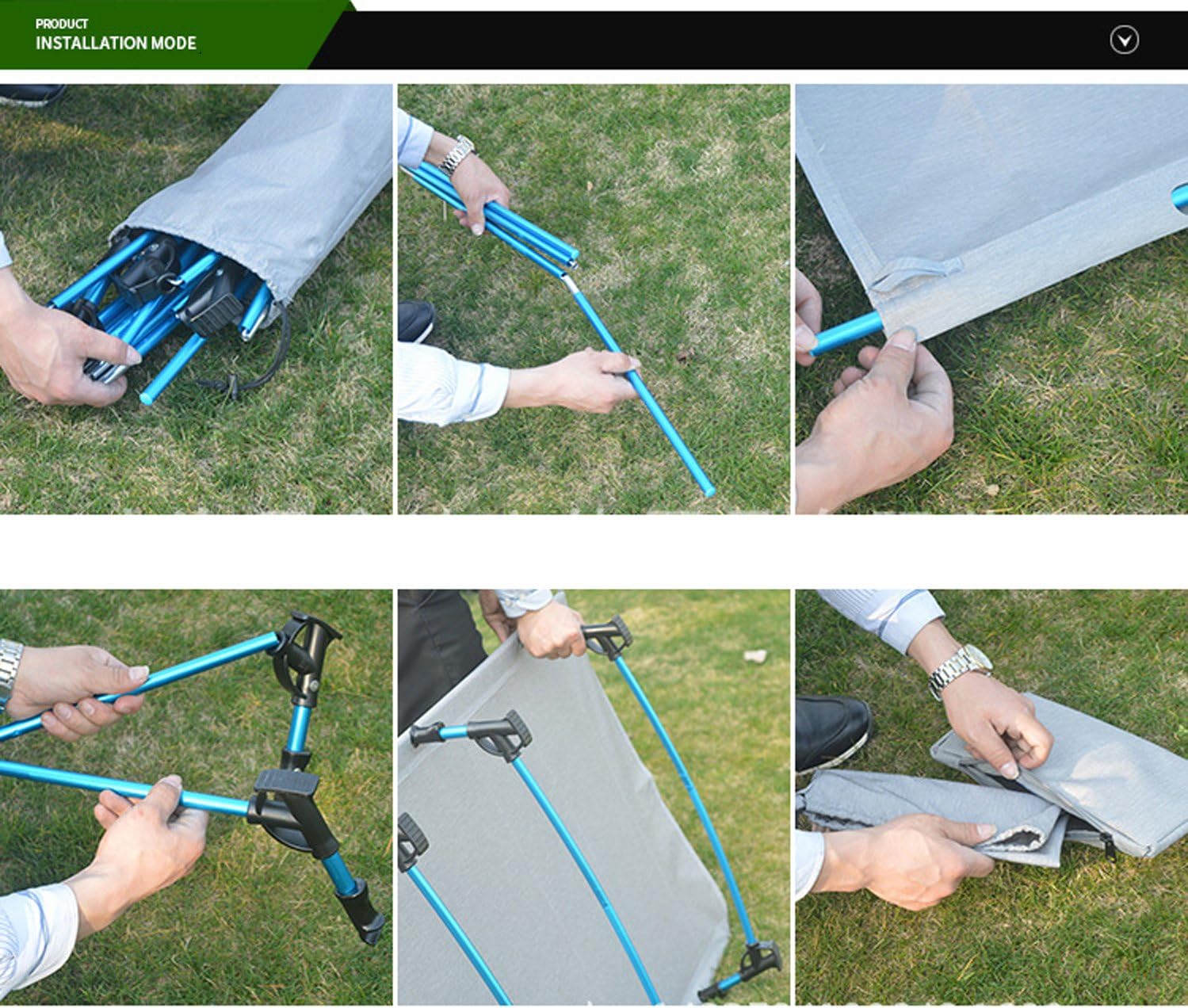This Suyi Advanced 74" Ultralight Portable Folding Single Camp Bed Travel Cot Tent Bed,Aluminium Alloy Metal Frame,Anti-tear Thickened Waterproof Nylon Cloth,Max. Load: 242lbs,More Comfortable,More Stable,No Deformation,And Long Lasting.With Storage Bag and Muti-use Pillow,Perfect For Outdoor Camping Hiking Fishing and Indoor Office etc. This is a portable folding bed with simple operation. it can be used for difficult terrain type ground. You can enjoy comfortable rest in the opern air. It also can be used as a good rest furniture at home. It can be placed anywhere you want. Features: Brand New And High Quality! Super lightweight and portable. Super Packable: Compact design fits easily in a pannier, portage bag or backpack. Durable Construction: Cot stands up to heavy use; waterproof,stretch-free anti-tear nylon cover, 7075 aluminum poles and hard plastic feet. Applicable to a variety of environments. Folding size is very small, very easily to carry. when you are in camping, traving, hiking, and some other outdoor activities, it is very useful. Specification: Weight: 1.9kg Load bearing:242lbs/110kg Unfolding size: 190*70*17cm/74.8*27.5*6.7in Folding size: 38*16*15cm/14.9*6.3*5.9in Framework material: 7075 aluminium alloy Bed cloth material: Anti-tear Waterproof Thickened Nylon Cloth The support leg:Sturdy Hard Plastic(Anti-slip) Package includes: 2pcs x Cross bar 5pcs x Support rod 10pcs x Leg 1pcs x Mat 1pcs x Bag