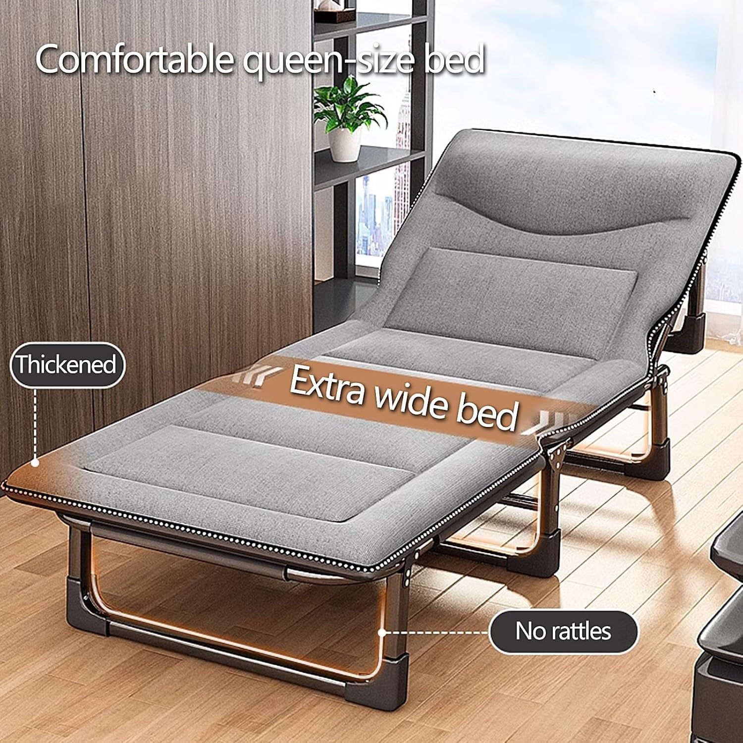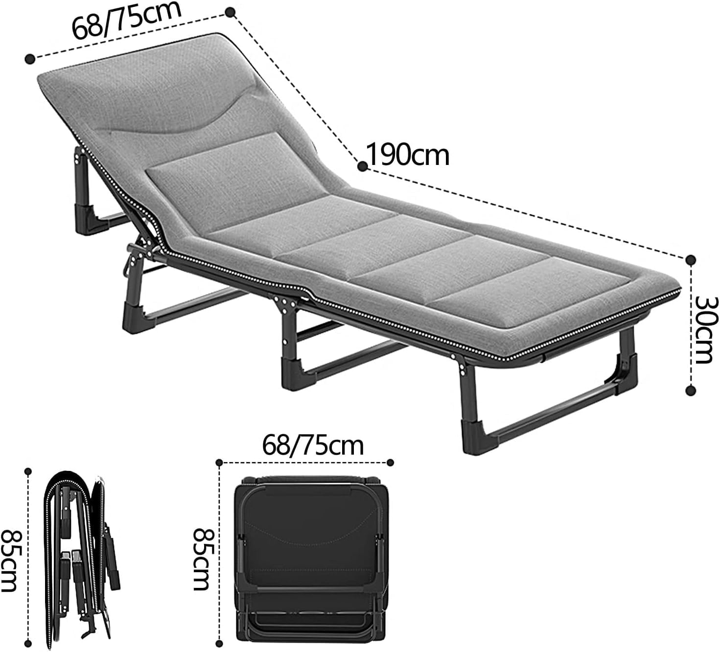 Name:Folding Camping Cot w/Mattress for Adults Portable Wide Sleeping Bed 4-Position Adjustable Heavy Duty Guest Bed Patio Chaise Lounger for Outdoor Travel Camp BeachColour: Blue,Pink,Green,Grey,Dark Green,BlackMaterials: Steel framework+Filling cottonSize: 190*68*30cm, 190*75*30cmWeight: 6kg, 6.5kgOur pull out bed are made of sturdy steel frames and skin-friendly fabrics, the pull out bed are well made with multiple points of contact with the ground, no center bar or metal rods passing underneath the body, very comfortable; Unpack and pack easily, light weight but sturdy, folds up surprisingly compact, takes up little storage space.Perfetc for camping, home, office, park picnic, beach, hospital and unexpected needs.Friendly Tips:1. Please kindly allow a 2-3% difference according to manual measurement.2. Please check the measurement chart carefully before you buy the item.(1 inch=2.54cm)3. Please note that a slight color difference should be acceptable due to the light and screen. Thanks.Promise:If the product has any quality problems, please feel free to contact us, we will help you solve the problem as quickly as possible.